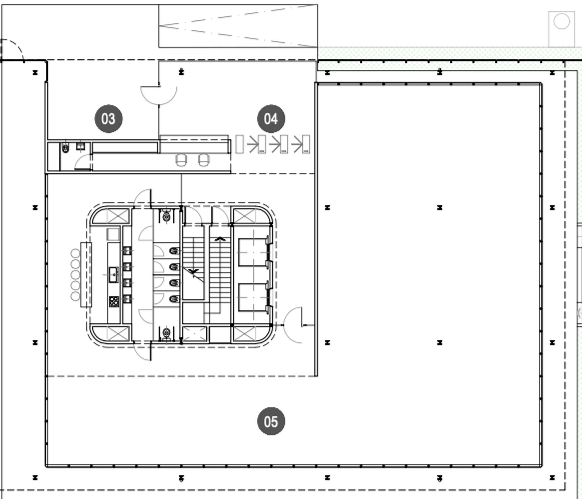 The property features a functional layout that includes full bathrooms, an electric kitchen with island, a storage area, and 32 parking spaces, of which 16 are semi‑covered and 16 are uncovered. In addition, the complex offers green spaces and recreation areas, enhancing the quality of life for employees and the corporate image.