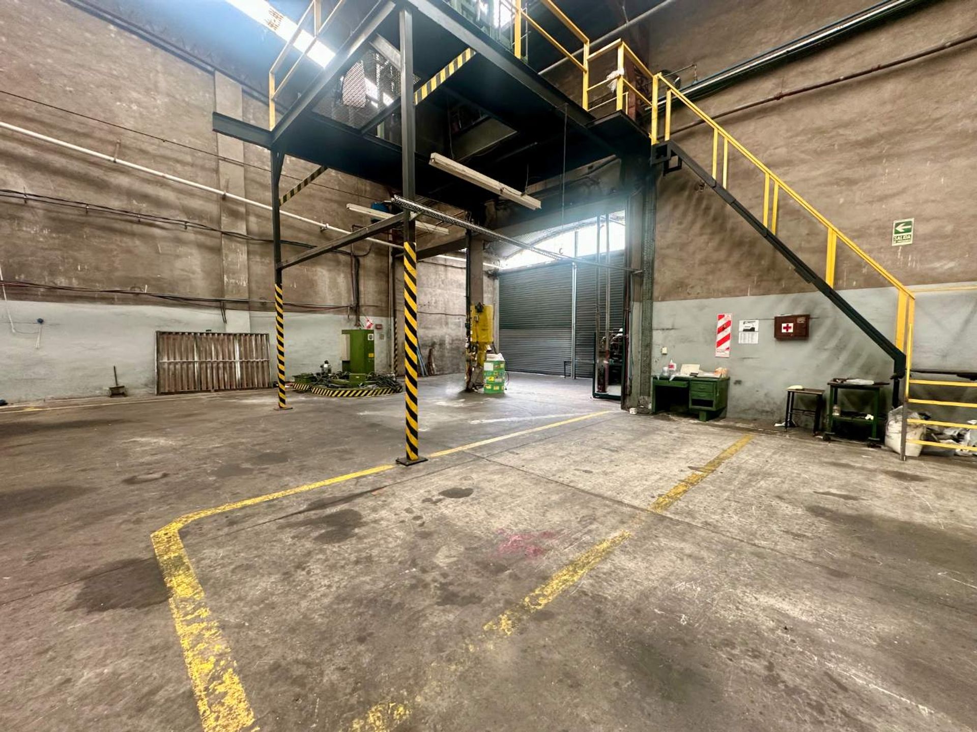 Regarding functional areas, the warehouse includes two offices with bathroom, two staff lockers, a kitchen and a storage room, as well as a two‑storey maintenance workshop or pantry with an incorporated office, facilitating internal organization and productivity.