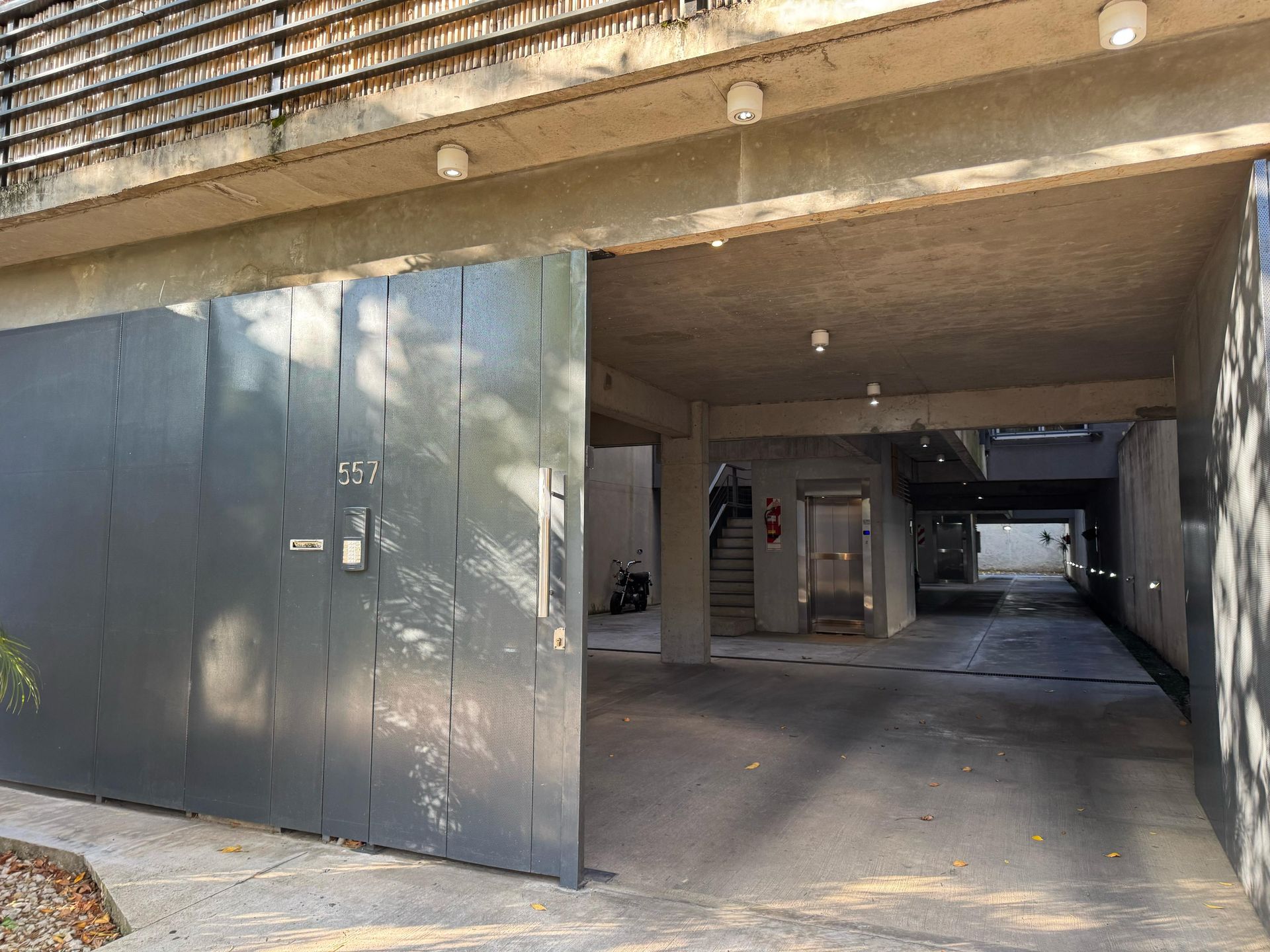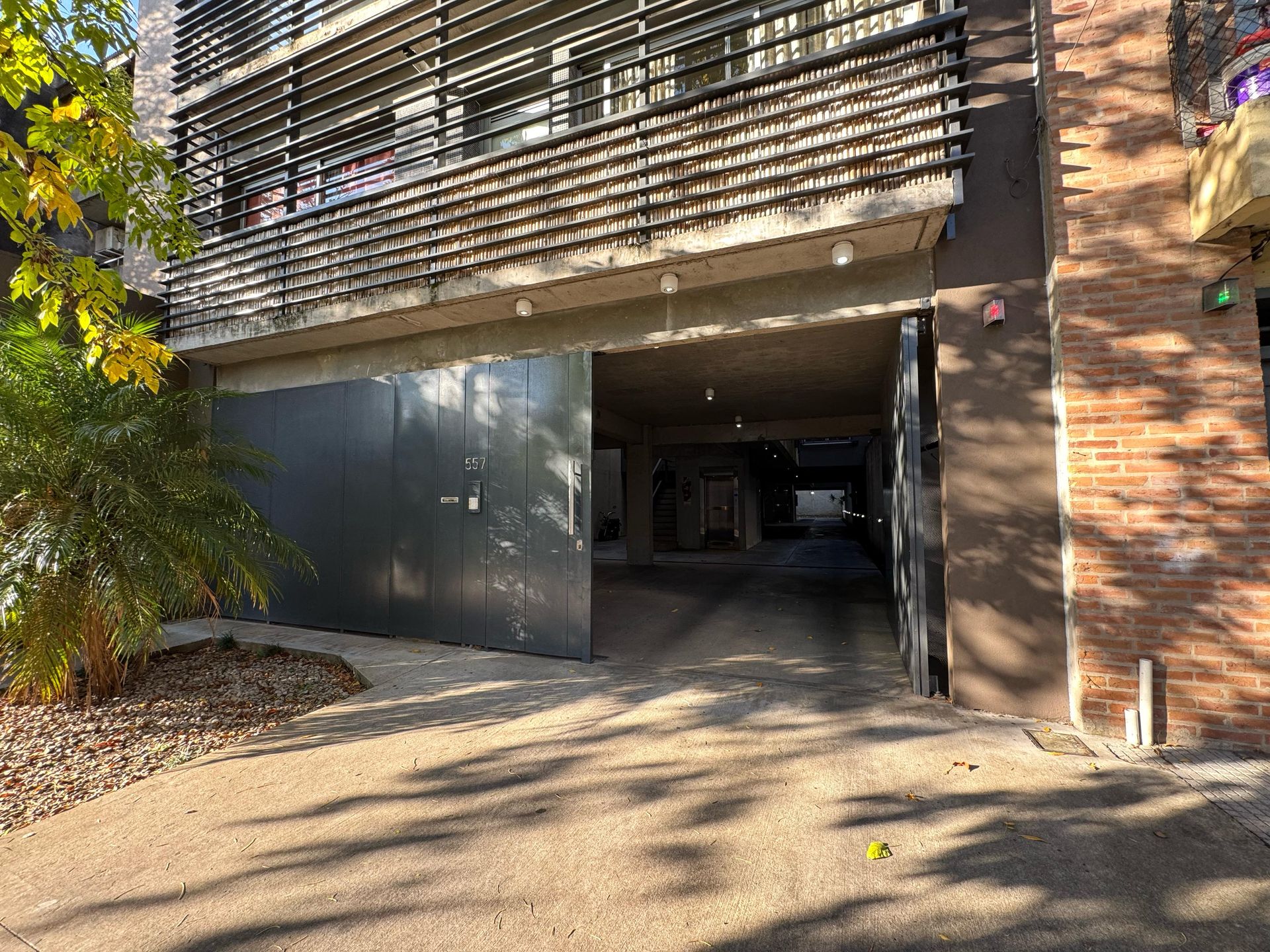 The space features a bedroom with built-in wardrobe, full bathroom, integrated kitchen with breakfast bar, bright living‑dining area, and independent laundry room. All rooms, except the bathroom, are equipped with windows that provide good ventilation and natural light. The uncovered garage has an electric gate, providing security and easy access.