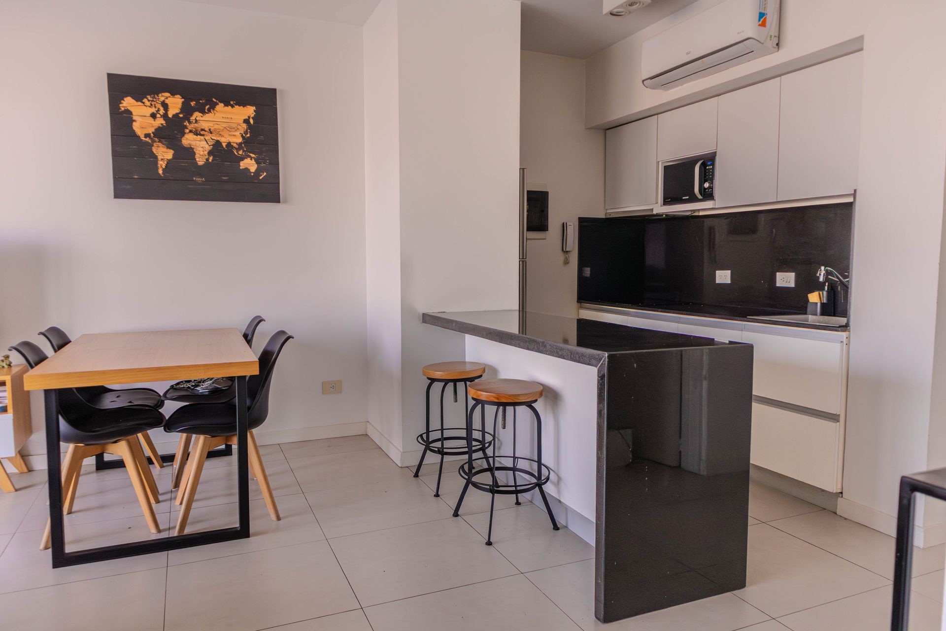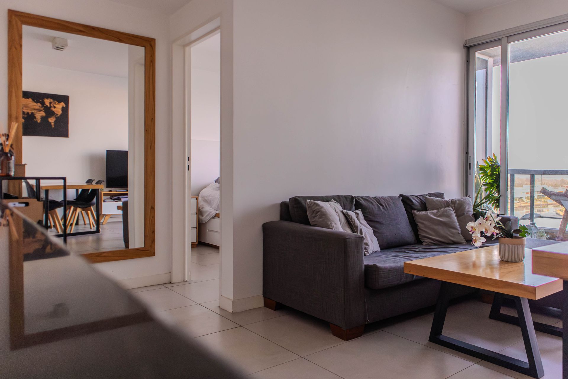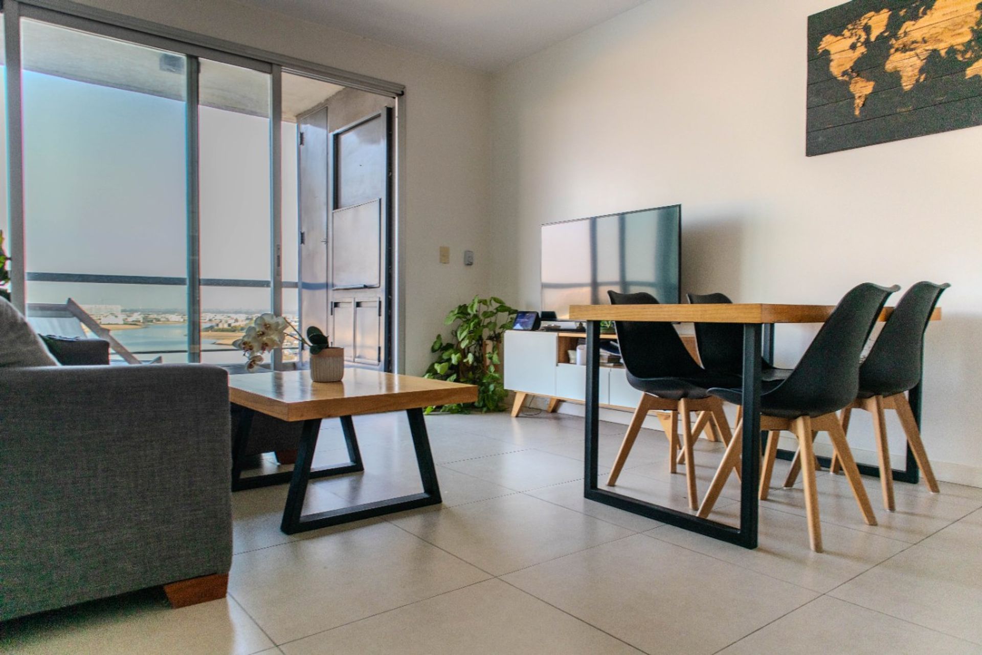This 1‑bedroom apartment (2 rooms) offers a unique perspective, with open views of the lagoon from the living‑dining area and the en‑suite bedroom. The integrated kitchen features modern furnishings that harmoniously blend with the social space.