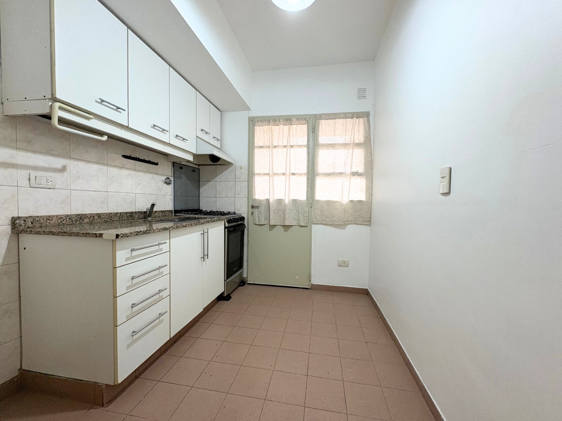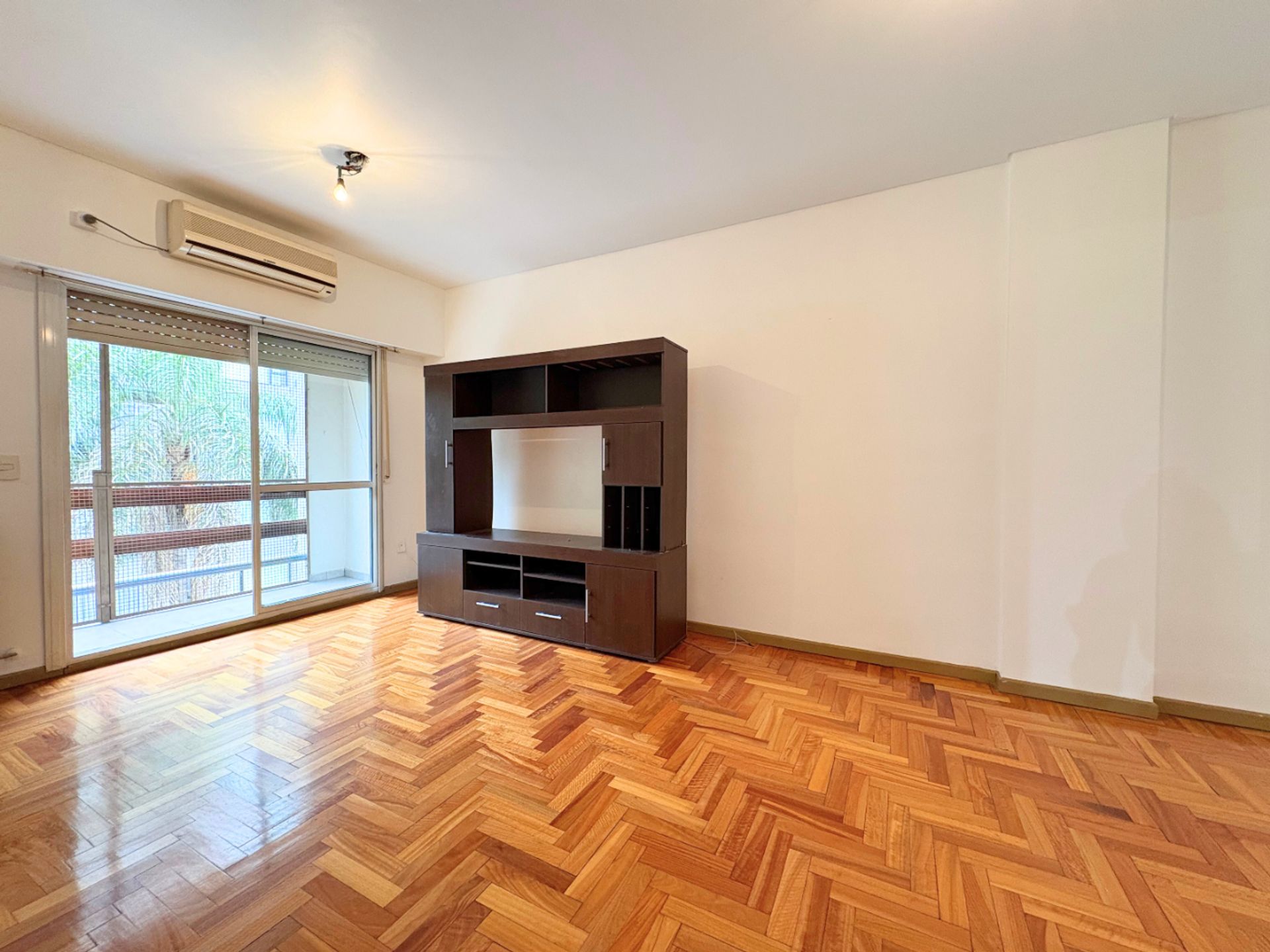 The unit features an efficient layout: a spacious living‑dining area with balcony access, offering views of the block’s green lung and excellent natural light. The bedroom, of generous dimensions, includes an integrated wardrobe. The independent kitchen, with double circulation, provides comfort and functionality, complemented by a separate laundry area and a full bathroom. A distribution hall with an additional wardrobe completes the organization of the space.