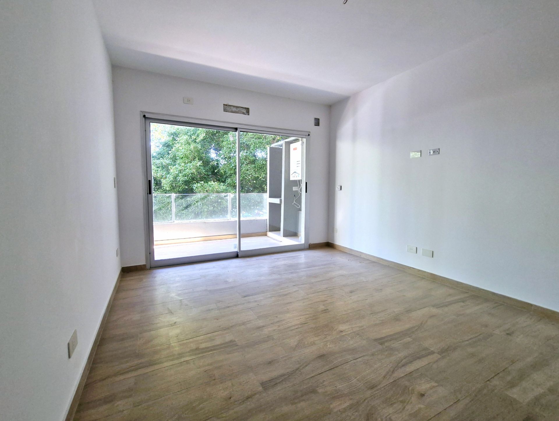 The unit includes a fixed parking space (No. 25) on the ground floor, with access via a fixed ramp and automated gate. HOA fees of $180,000 cover parking, AYSA and municipal services. Individual heating via radiant slab with Dual boiler, and pre‑installation for split air conditioning in each room. The finishes are high quality: porcelain tiles simulating wood, aluminum windows with DVH, designer kitchen furniture and Ferrum sanitary fixtures.