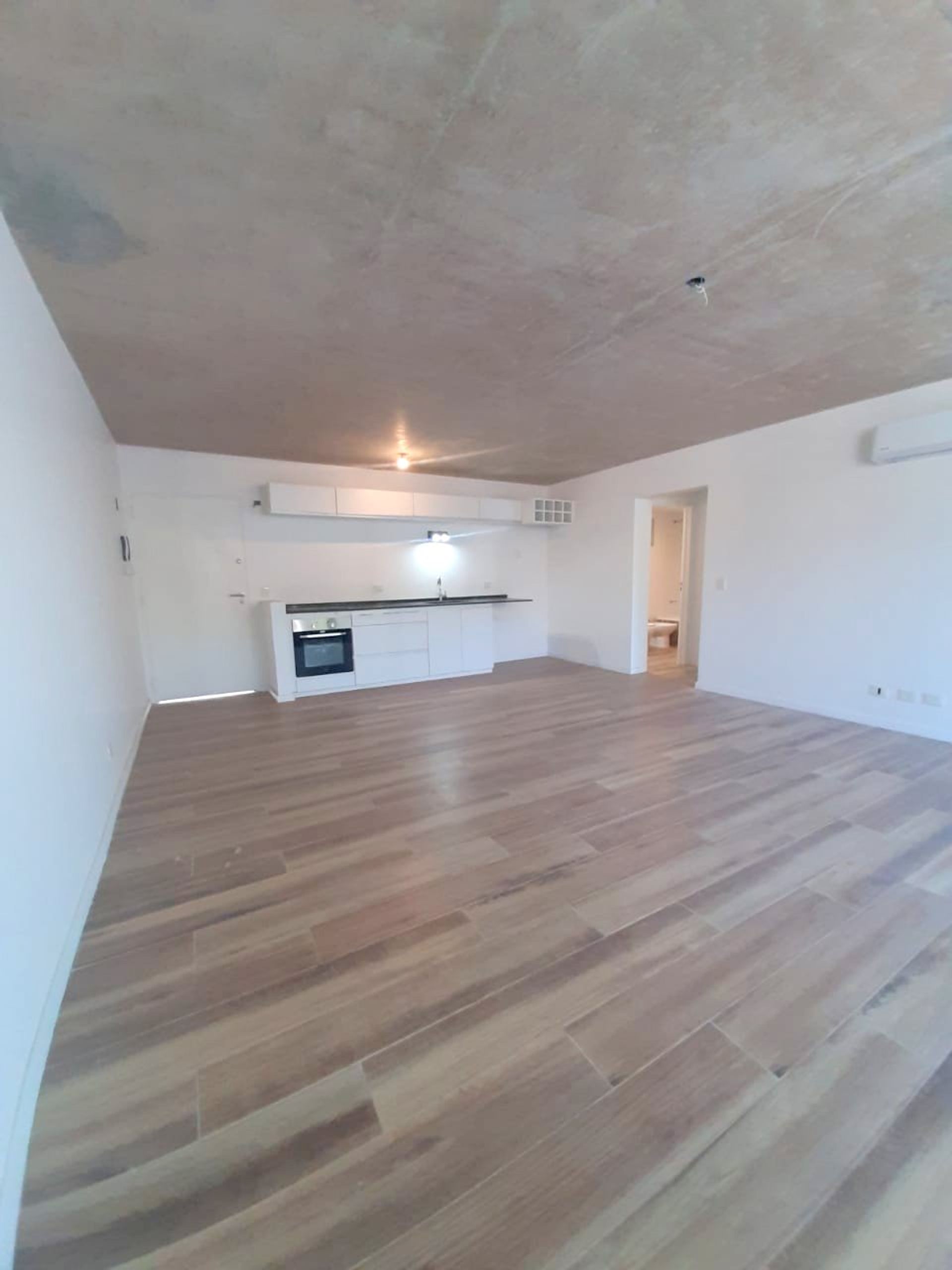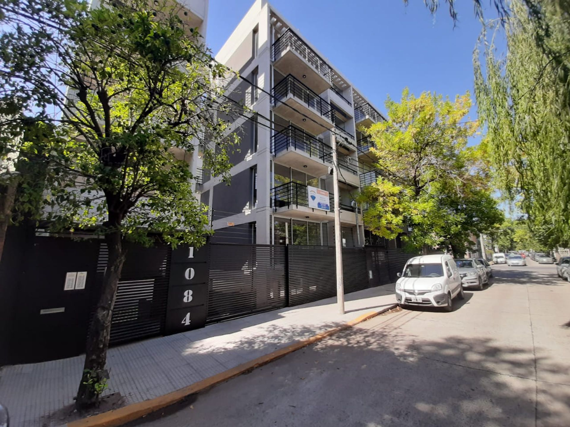 Spacious two-room apartment with frontal view, located on the first floor of a building at the intersection of Rivadavia and Av. Perón. The five‑storey building features a modern design and has been constructed only a few years ago.