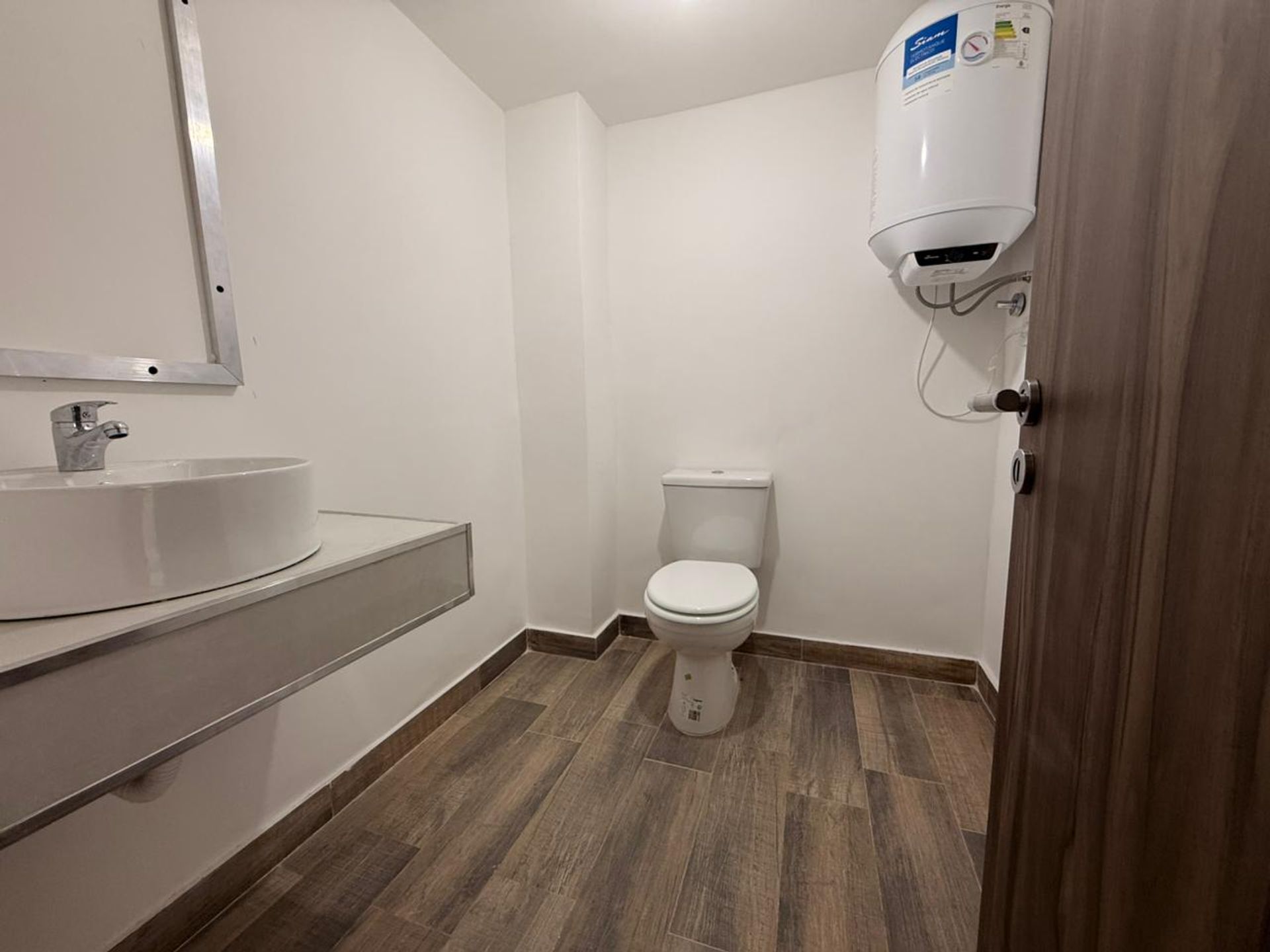 The apartment includes a reception toilet, a bedroom with walk‑in closet, and a full ensuite bathroom, all designed with modern, functional finishes.