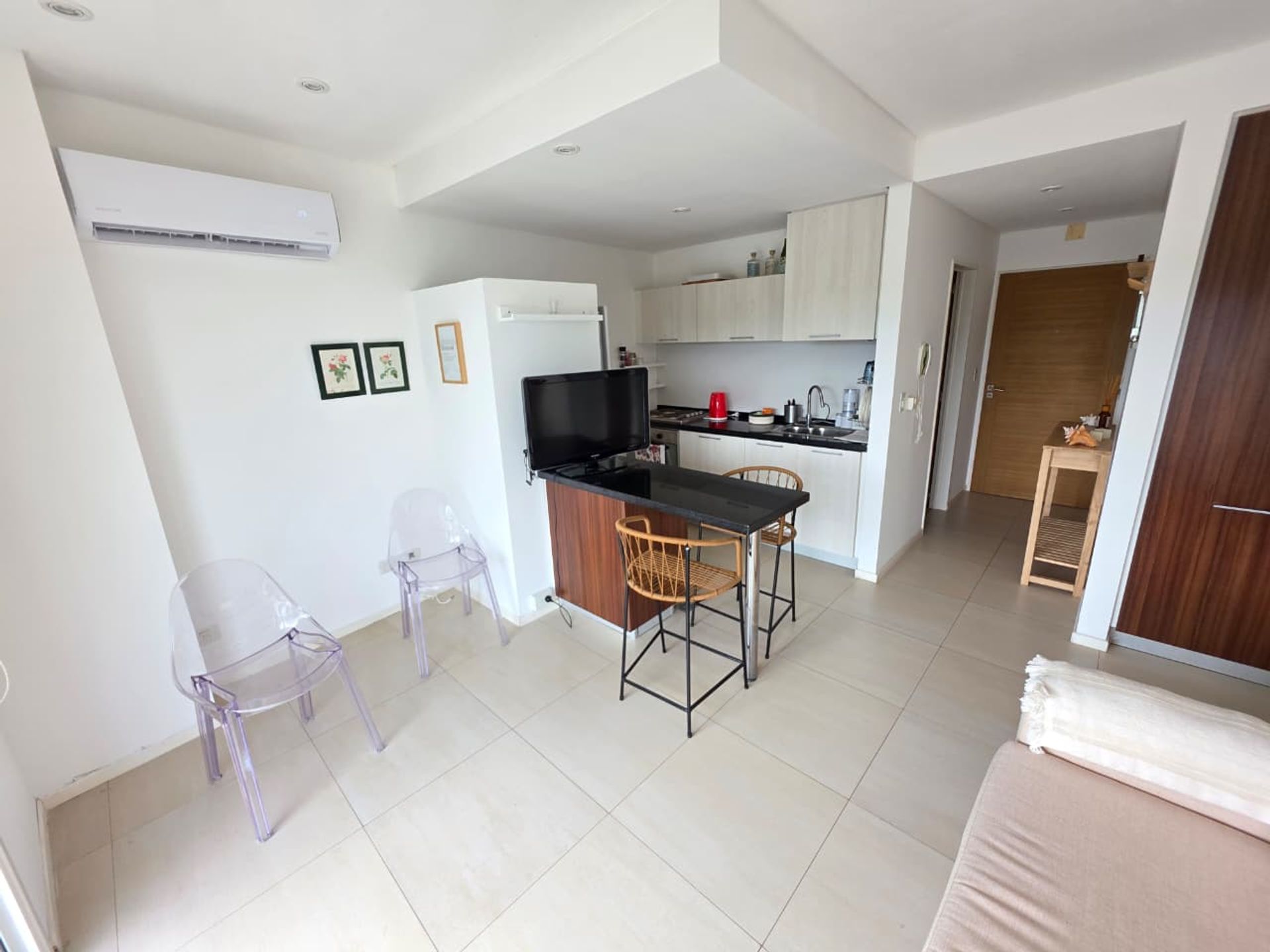 The published price does not include HOA fees, municipal tax or utilities, and the rent is unfurnished. This standard 1‑bedroom apartment of 2 rooms is located on the second floor of a building with courtesy parking. Upon entering, the reception hall leads to a bright living‑dining area with an integrated kitchen and bar, and to a terraced balcony overlooking the lagoon. The bedroom has ventilation, natural light and a closet, while the full bathroom features a bathtub with hydro massage. Amenities of the complex include a year‑round heated pool, a semi‑covered SUM area with grill, gym, sauna and courtesy parking. The location is ideal for accessing Bahía Grande de Nordelta and Route 27, just 200 meters away, with access to Camino de los Remeros and the Tigre branch to the City of Buenos Aires. The lease requires a two‑year term, owner guarantee or surety insurance, one month’s advance, a $900 deposit and real‑estate commission.