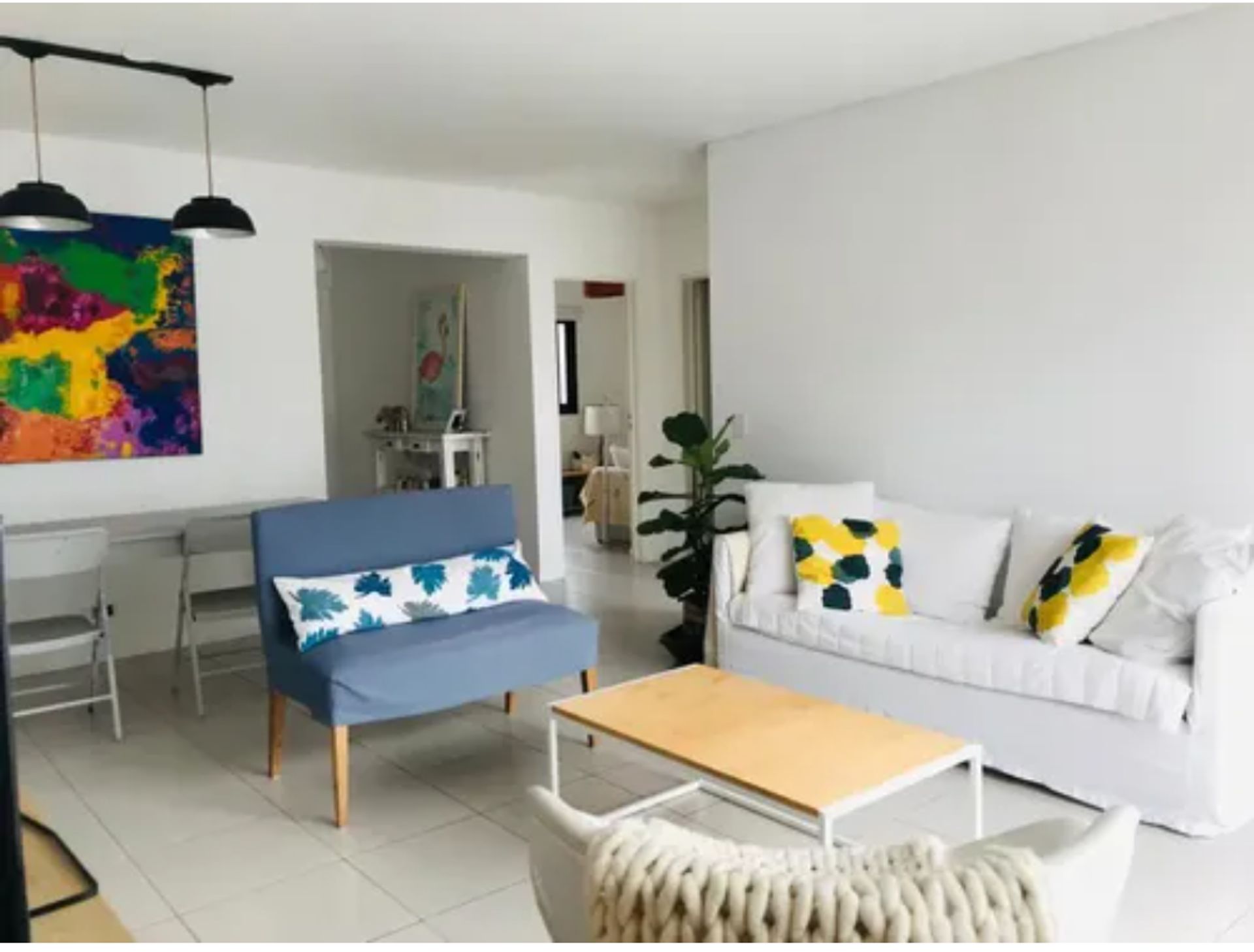 The spacious living‑dining area, with direct access to another balcony, creates an ideal space for gatherings and moments of relaxation. The kitchen, fully equipped, includes a laundry area and ample space to prepare meals in style.
