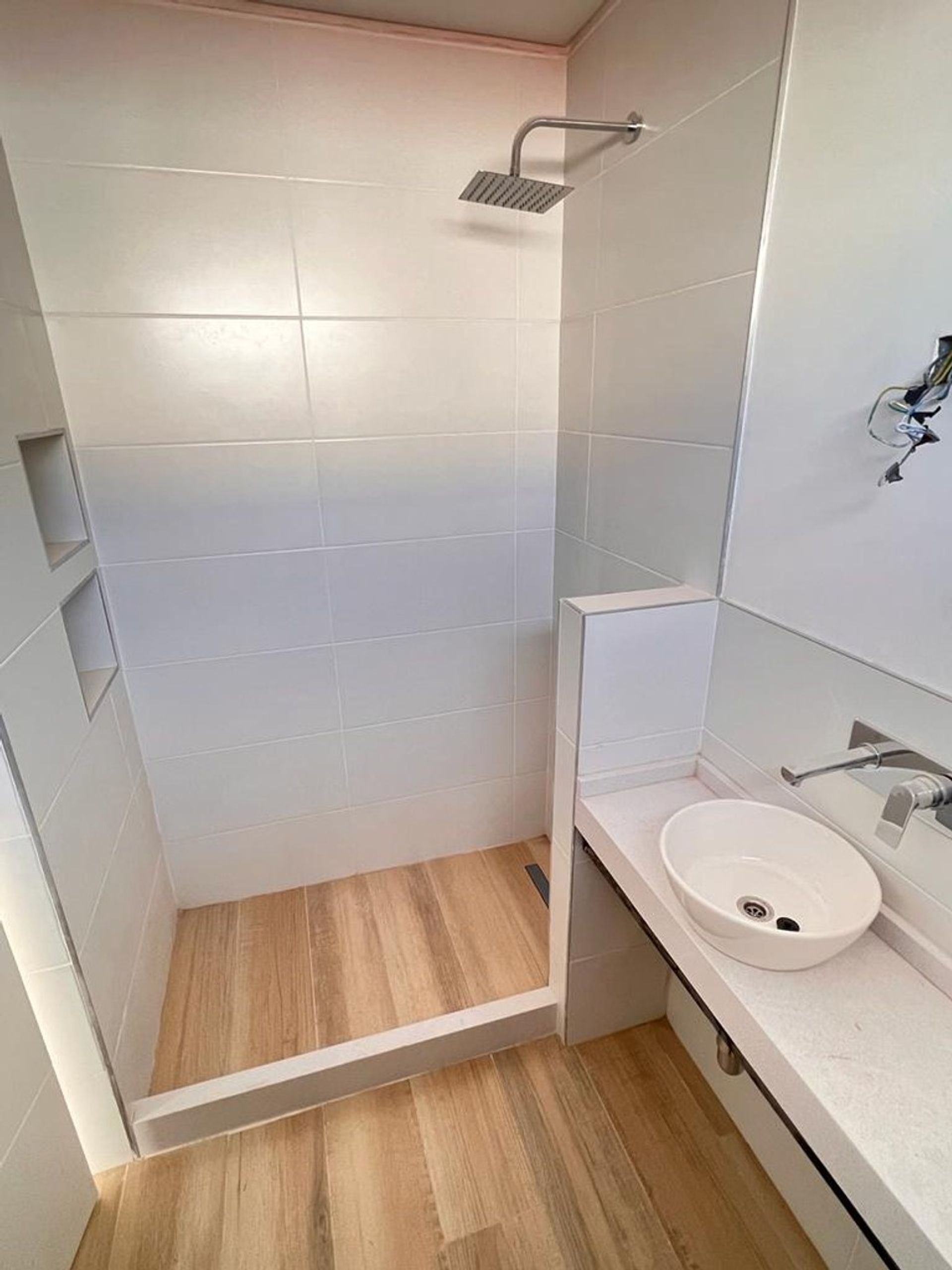 The two bedrooms are located on the opposite side of the apartment. One of them has an en‑suite bathroom, while both have wardrobes for storage. The space of 72 m² covered and 8 m² semi‑covered allows a balanced and comfortable distribution.