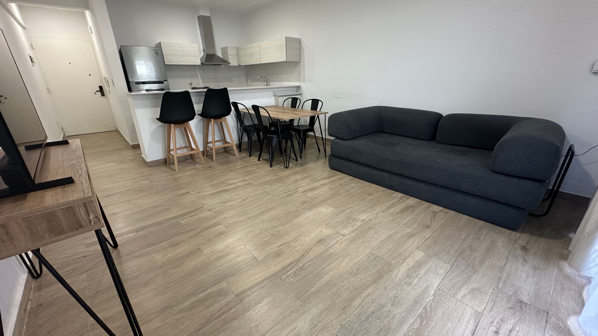 The interior is organized in a functional layout, with a spacious bedroom and a living area that seamlessly integrates with the kitchen, providing a comfortable and practical living experience. The arrangement of the spaces allows ample natural light to enter, creating a welcoming and contemporary atmosphere.