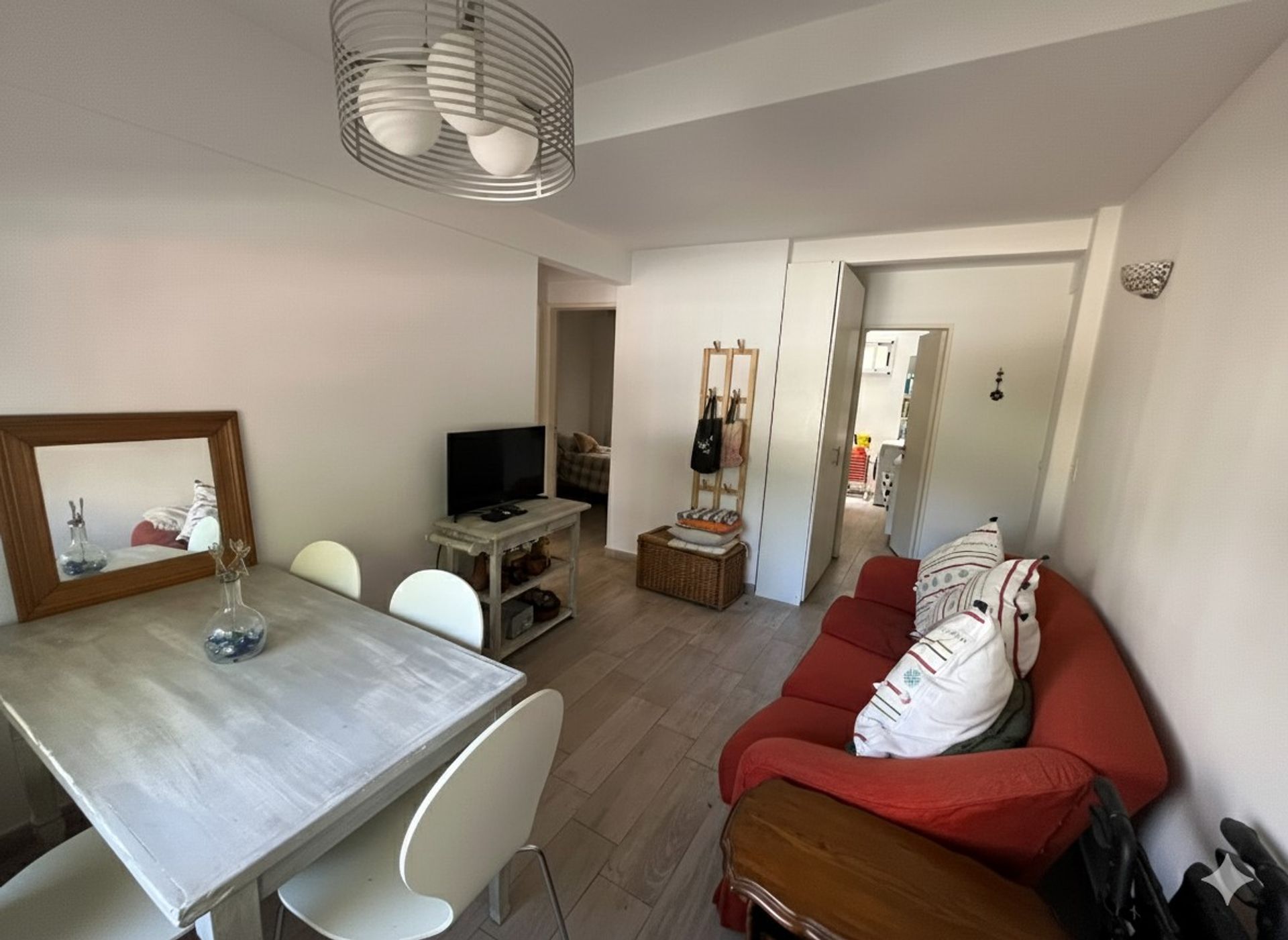 The layout is functional and welcoming: a spacious living‑dining area that invites socializing, a kitchen with dedicated laundry space and ample storage, two bedrooms with built‑in wardrobes offering privacy and comfort, a full bathroom with modern finishes, and a private patio of 5 m², ideal for enjoying outdoor air. The property is in very good condition, with electricity and gas services already installed and air conditioning for comfort in all seasons.