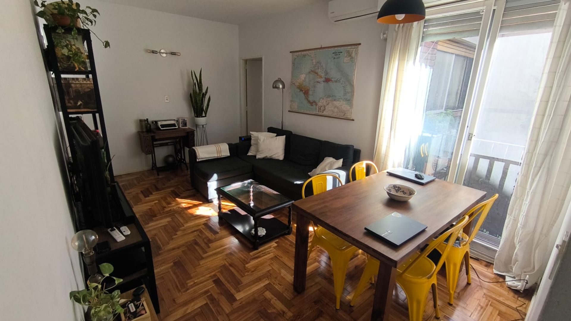 The property is located on the first floor of a classic building in the area, featuring a well‑maintained façade and a quiet ambiance. The living room and dining area open onto a side window that, although interior, allows lateral light to enter thanks to the low side wall. The kitchen has natural ventilation and a functional design. The bedroom has a large window that provides brightness and freshness. The full bathroom includes a shower and a top‑loading washing machine.
