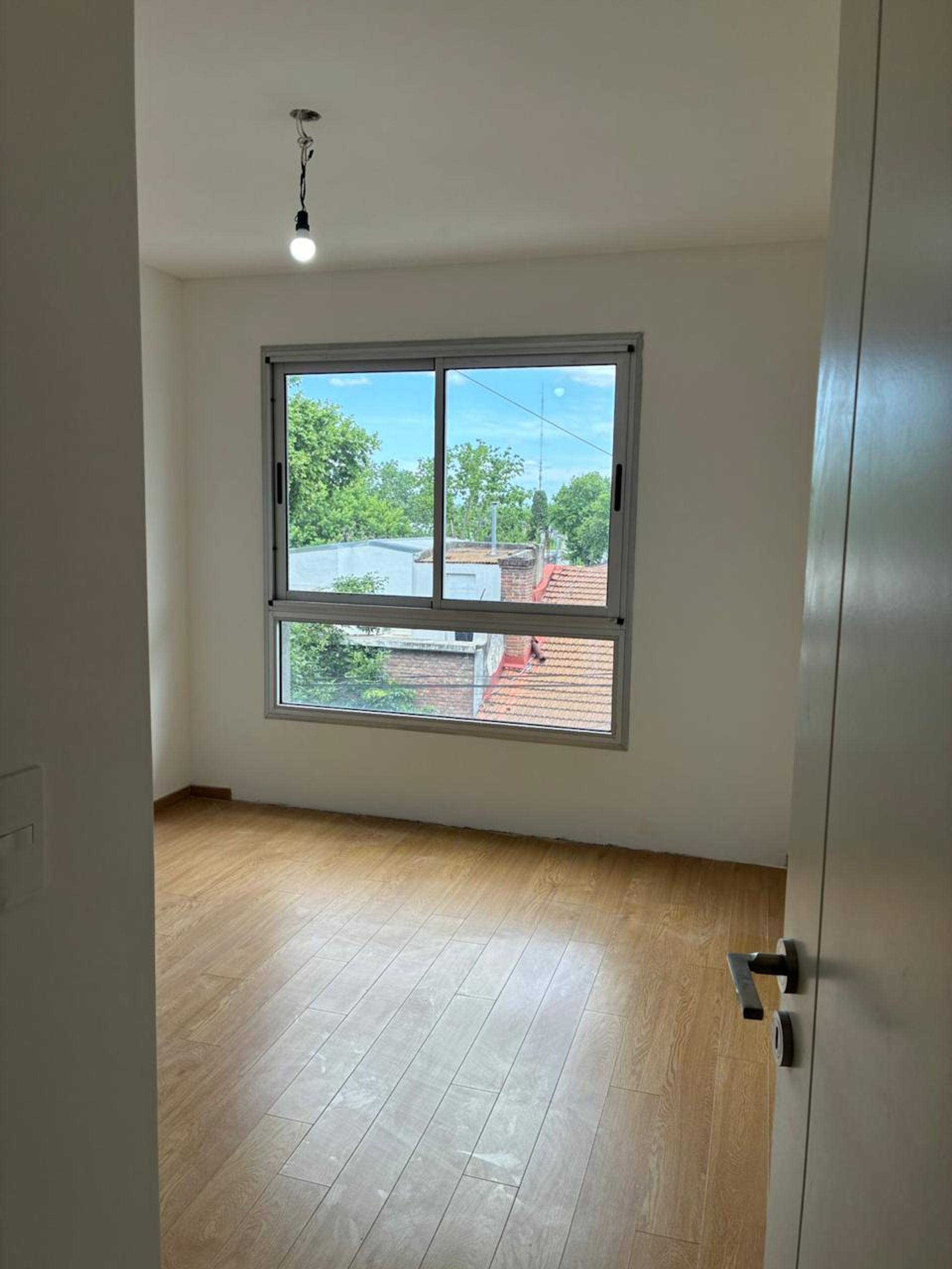 The bedroom offers a direct view onto the street, ensuring good natural light and ventilation. It is located on the third floor facing a four-story building, providing privacy and tranquility.