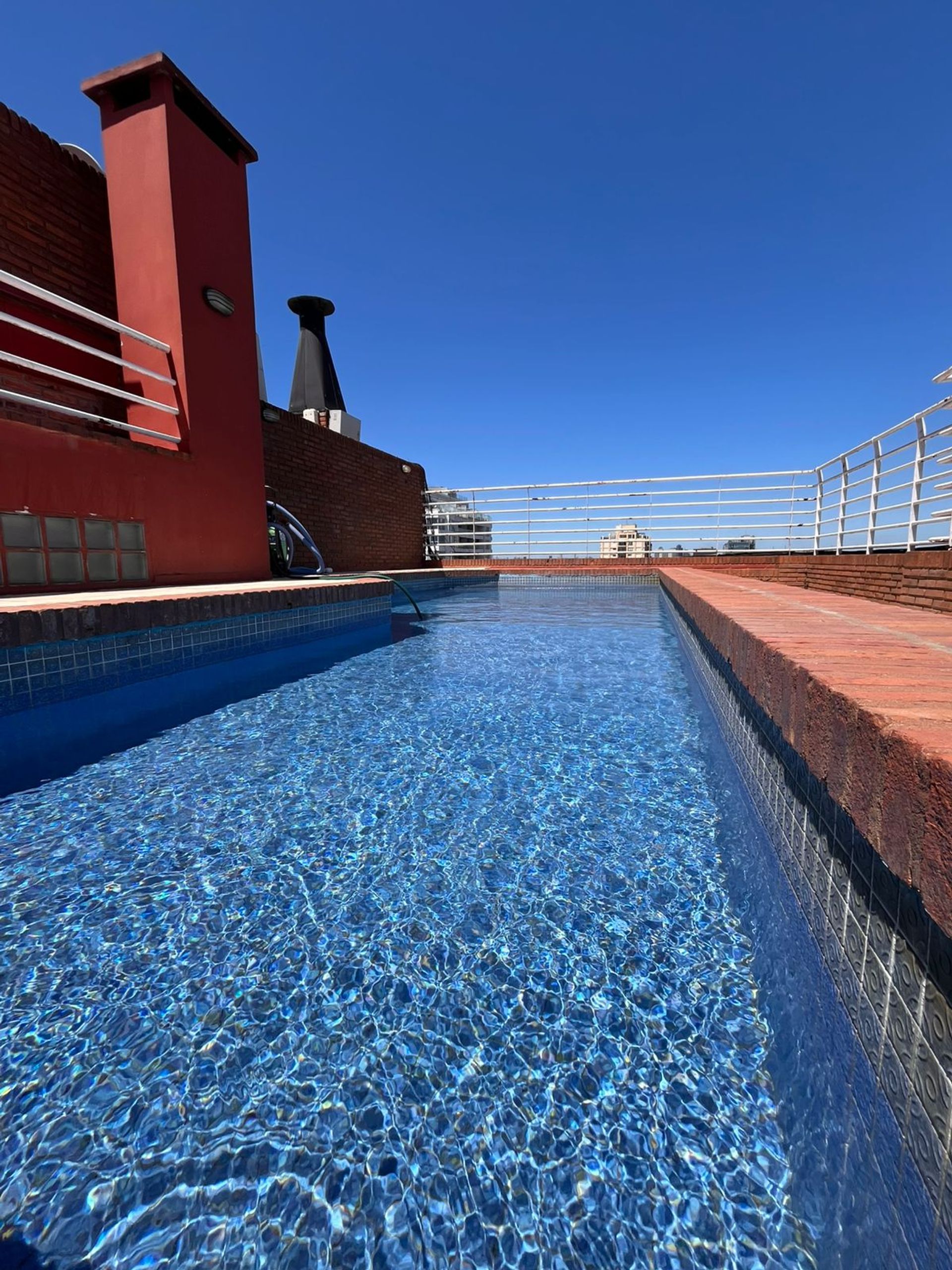 The building offers an outstanding amenities sector, with a rooftop pool that provides an unparalleled panoramic view, ideal for enjoying the outdoors and sunsets over the river.
