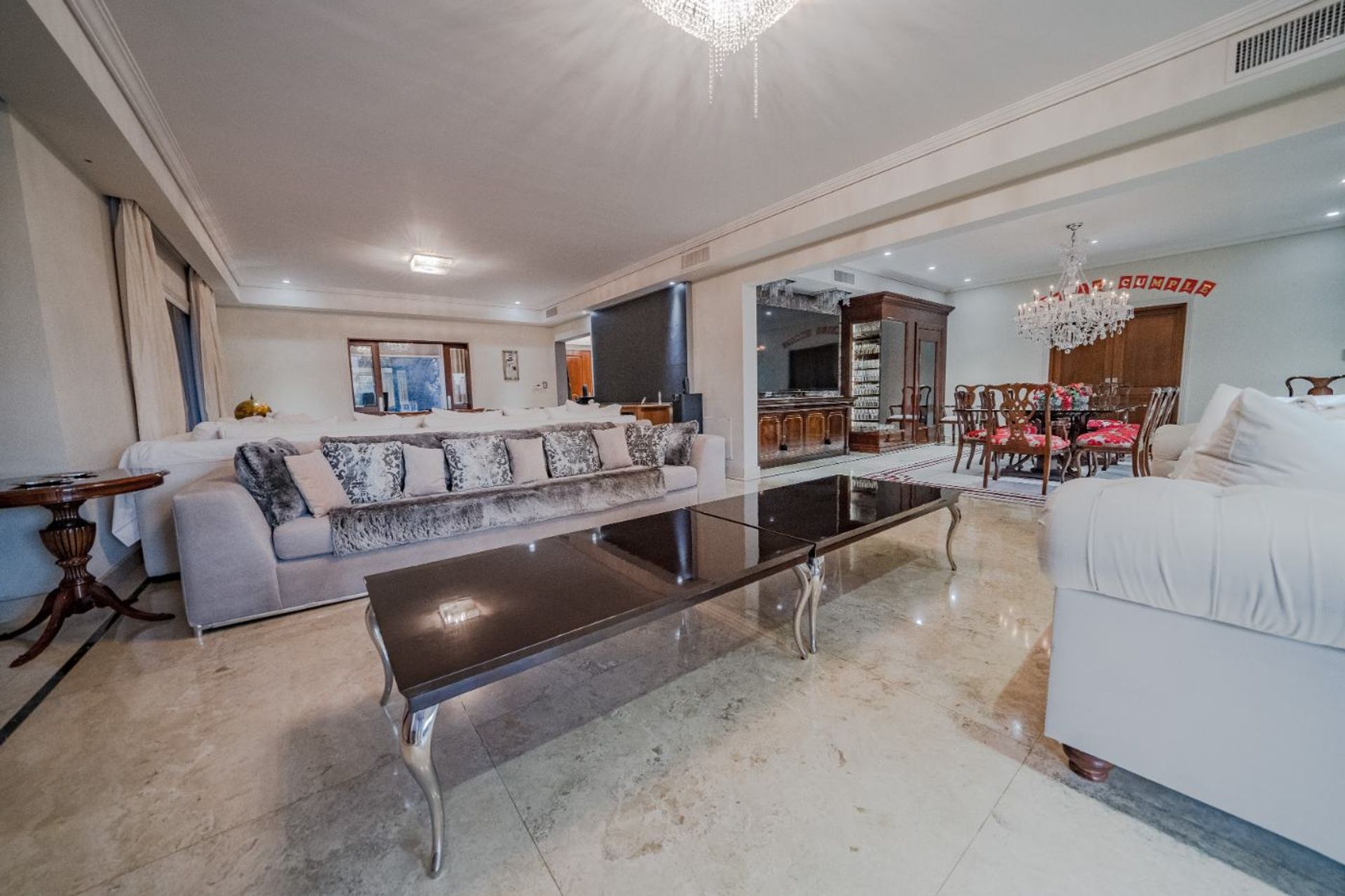 Annual lease of a luxury furnished residence located in the Los Castores II, Norte neighborhood. The property features a ground‑floor layout with two upper stories, high‑end finishes, and panoramic views of the lake and front park.