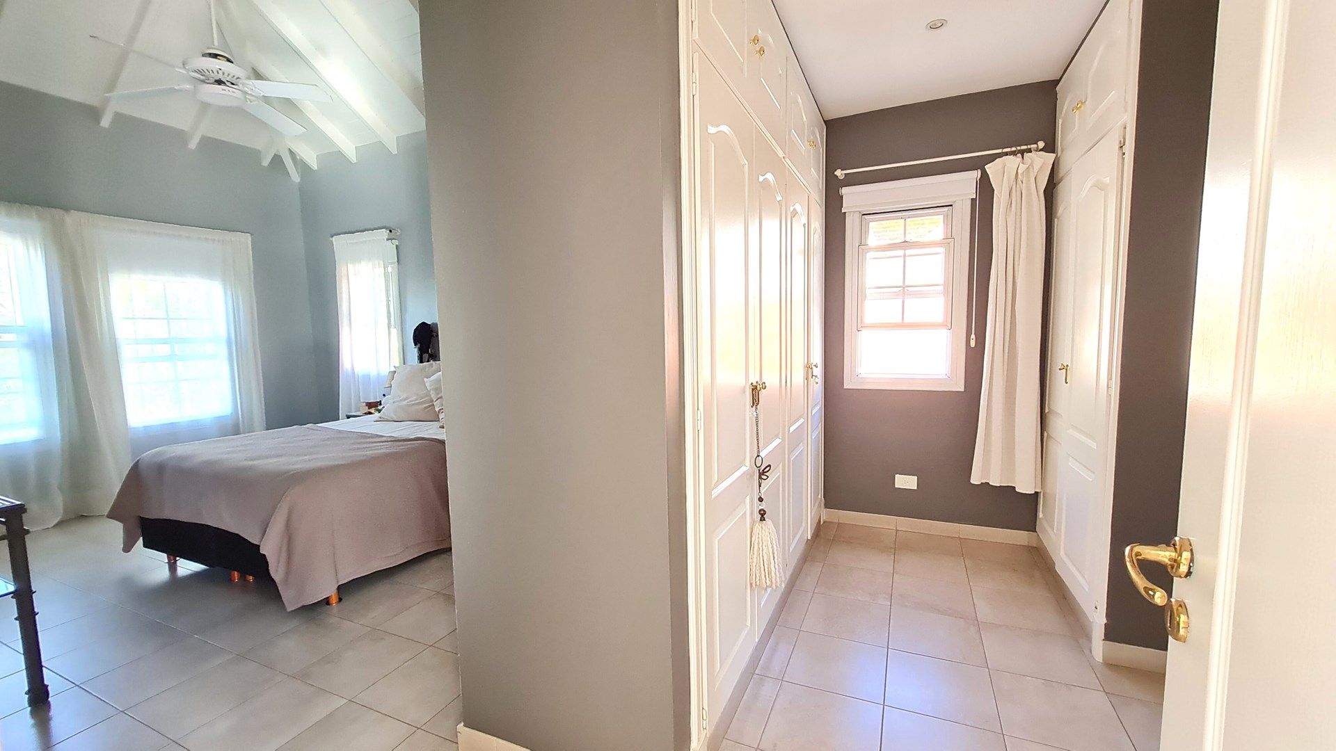On the ground floor there is a spacious living‑dining area, a study, a toilet, a kitchen with a casual dining space and a service bedroom. The gallery, divided into two sections, features a grill and a basin, ideal for outdoor gatherings. The landscaped garden, irrigated by sprinkler, complements the relaxation area. The 8 × 4 m pool, clad with solarium, is equipped with lighting and a filtration pump. The garage space can accommodate 5 to 6 cars, and includes a storage/closet. A heated bathroom with shower serves both the pool and the service staff.