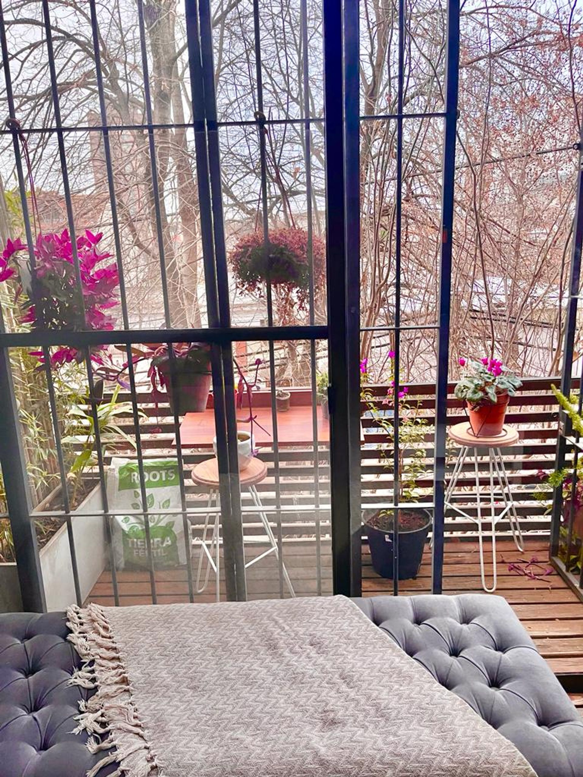 1‑bedroom loft apartment for rent, 48 m², located on the second floor of a building accessed by stairs. The unit has two rooms, one of which is a bedroom, and a balcony overlooking Moreno Street in San Isidro. A fixed parking space is located on the ground floor, covered and with an automatic gate. Inside the apartment there is an electric water heater, a gas stove, electric radiant floor heating on the upper floor, and two split air‑conditioners.