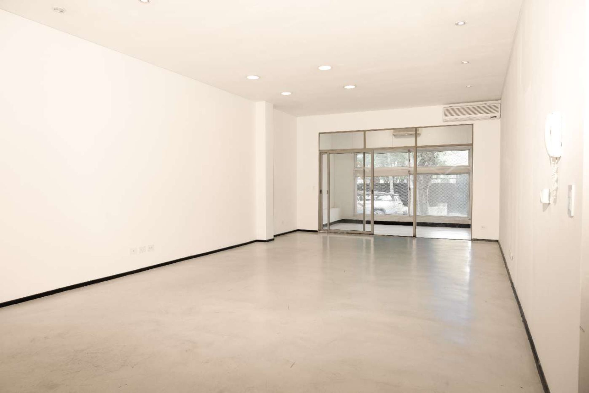 The interior division is achieved through a glazed window separating the covered area from the semi‑covered, highlighting high ceilings and abundant natural light. Heating is managed via an individual radiant slab with dual boiler, complemented by two split‑type air conditioning units and roller blinds for added comfort and light control.