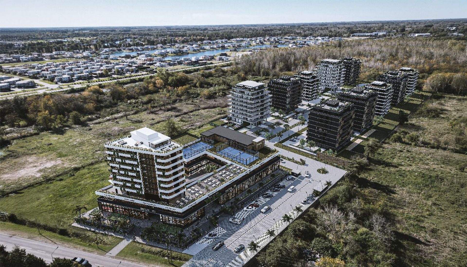 Offices, apartments and retail spaces available in the new residential complex in Doral, located on Av. Italia, between the Nordelta and Villanueva neighborhoods.