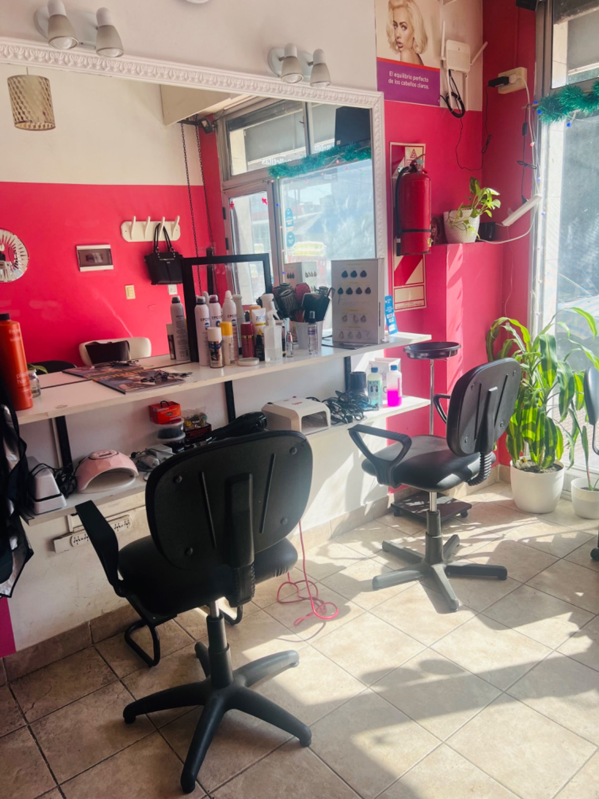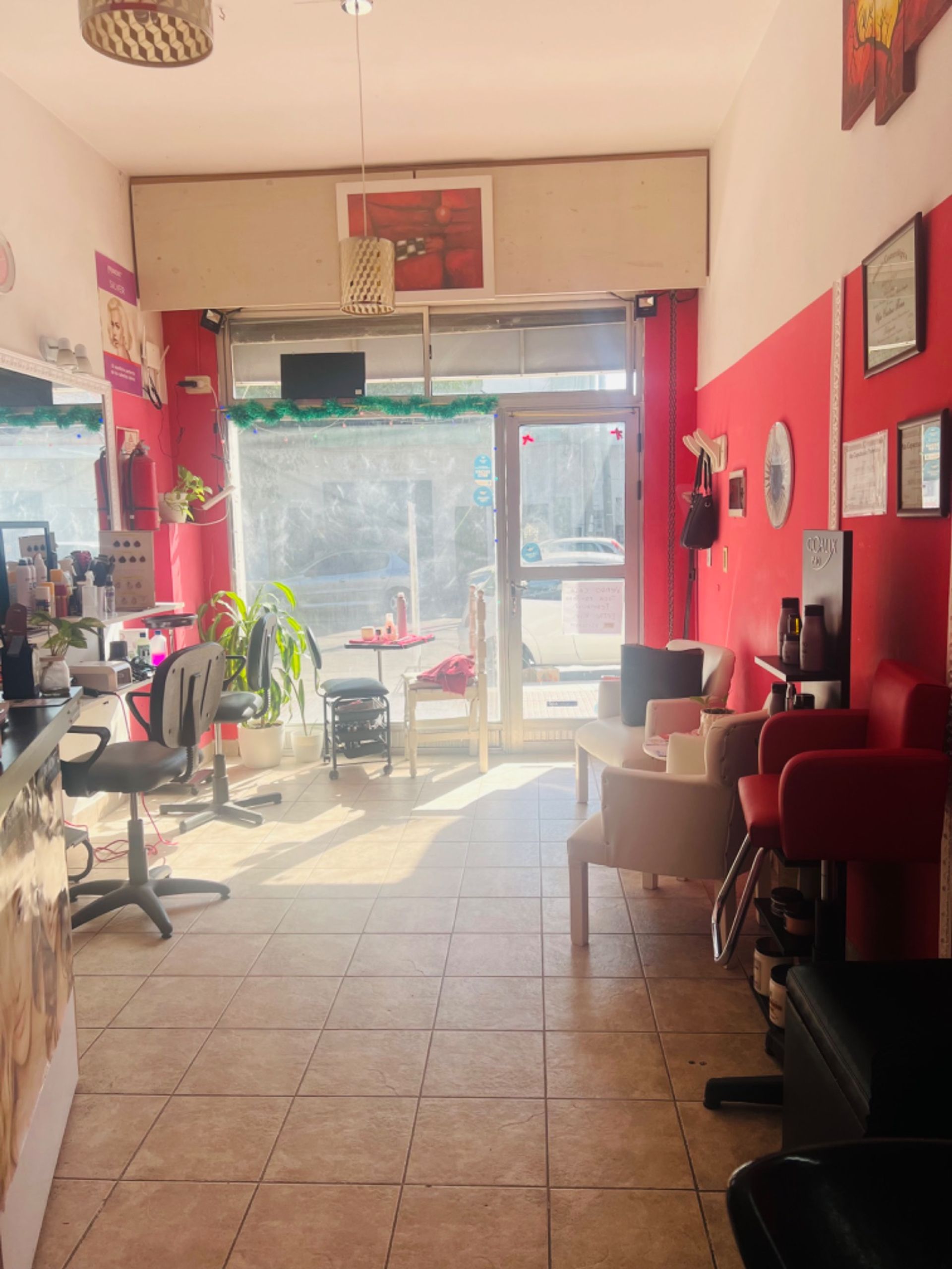 The premises are fully equipped to operate as a hair salon and esthetic studio. It includes a styling area, a washing area, reception and waiting area, as well as an additional space for manicure and a waxing room. Climate control is achieved through an air conditioning system that provides cooling and heating.