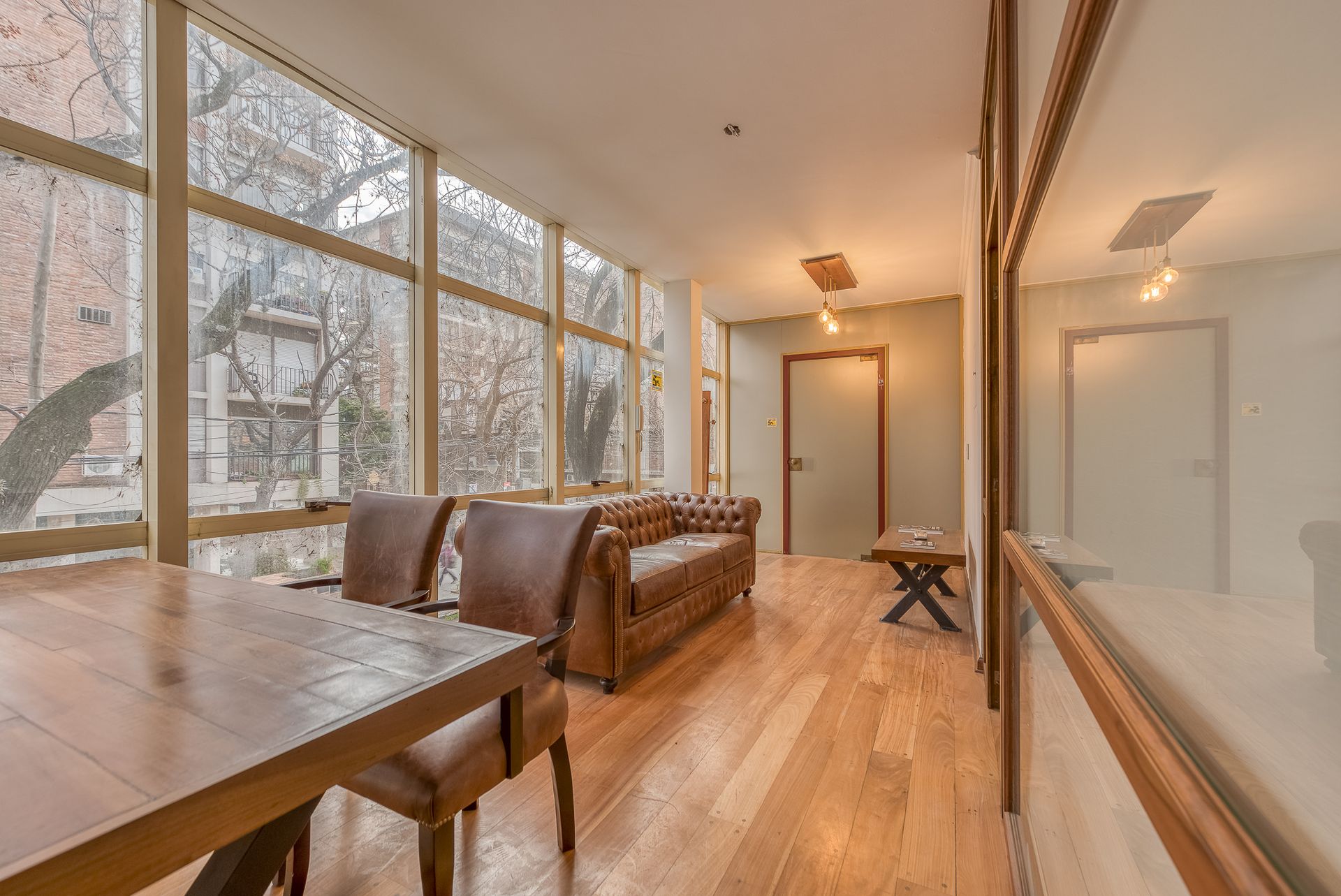 Located in the heart of San Isidro, on Rivadavia at the corner of Leandro N. Alem, this 35 m² office is situated in a corporate building with a glazed façade that offers views of both the street and the green lung with its internal garden. The space is divided into functional areas: meeting room, kitchen, and service zones, with heating/cooling air conditioning and internet access. The telephone line is active, ensuring immediate connectivity.