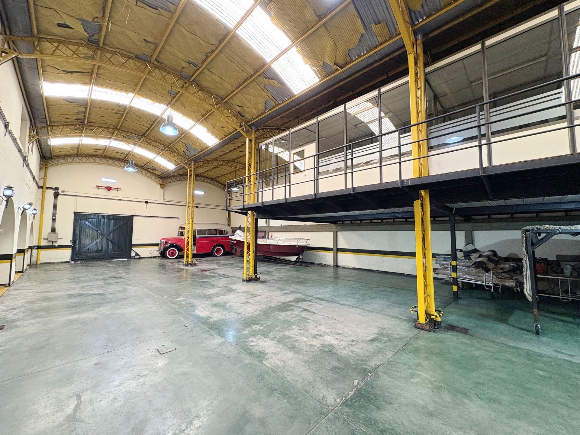 The structure spans 600 m² distributed between the ground floor and the first floor. The vehicle entrance is complemented by an electric gate and an independent pedestrian entrance, facilitating the flow of people and vehicles. The upper floor contains seven office rooms, totaling 185 m², equipped with a bathroom and kitchen, while the ground floor provides two spaces of 27 m² each. Additionally, the workshop area features a workbench and a car pit, and there is an 80 m² refrigerated storage on the ground floor. The upper floor also includes an independent apartment of approximately 90 m², accessible via a side staircase.