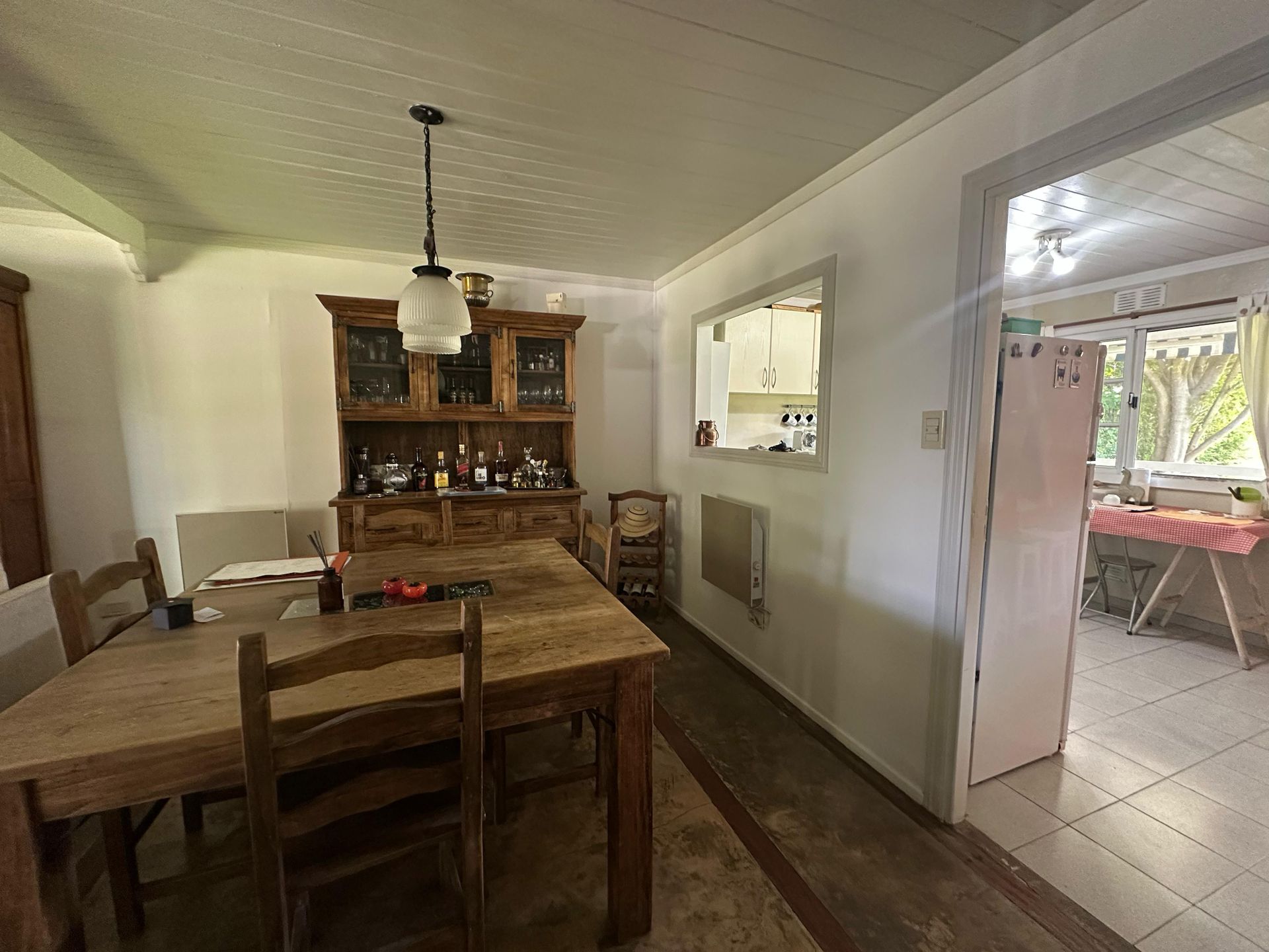 The layout of the residence is single‑level, with a bright semi‑integrated living‑dining area that opens onto a gallery and a spacious garden. The kitchen, functional and with direct exterior access, complements the open flow of the living space.