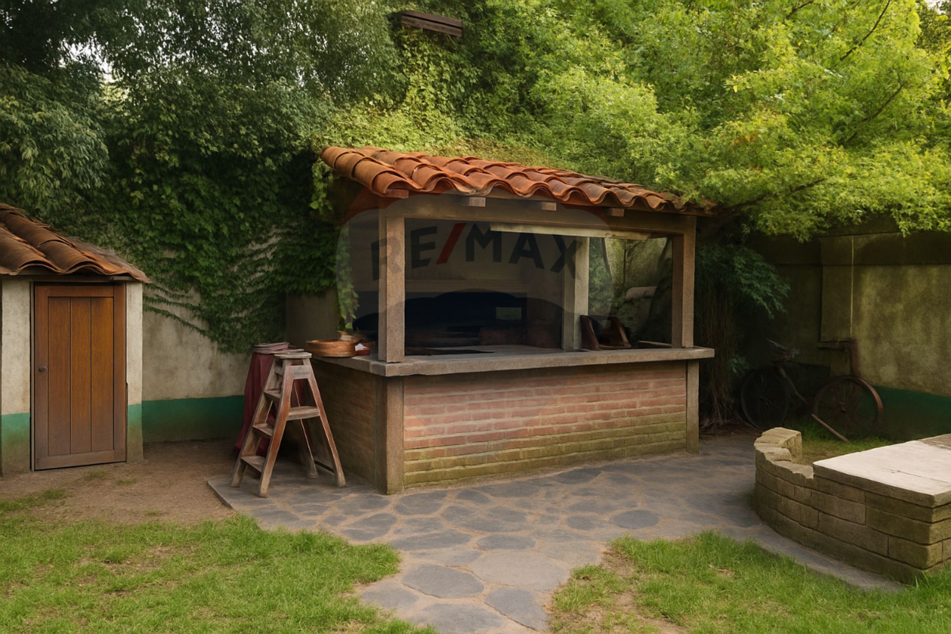 The property includes an existing structure, with a covered area of 400 m² that incorporates a patio, grill, storage, and residence. The upper floor has independent access and functions as a three‑room office with bathroom. The ground floor includes changing rooms and a full bathroom, offering functional and versatile use.