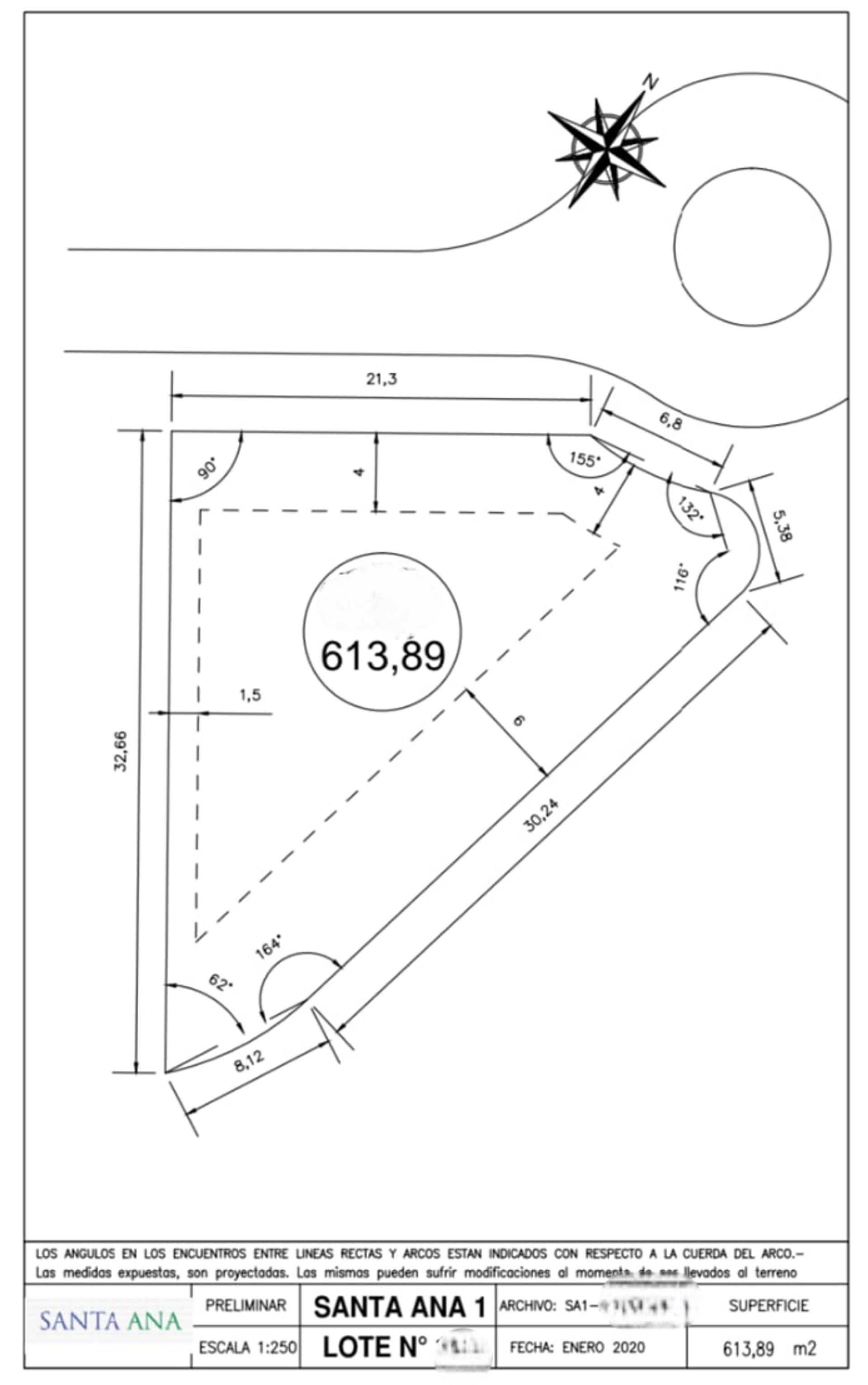 Corner lot of 613.89 m² located in the heart of Santa Ana, within the exclusive Villa Nueva complex in Tigre. Its wide frontage of 21.3 m and position on a quiet street with low traffic ensure maximum privacy, excellent visibility, and flexibility for architectural design.