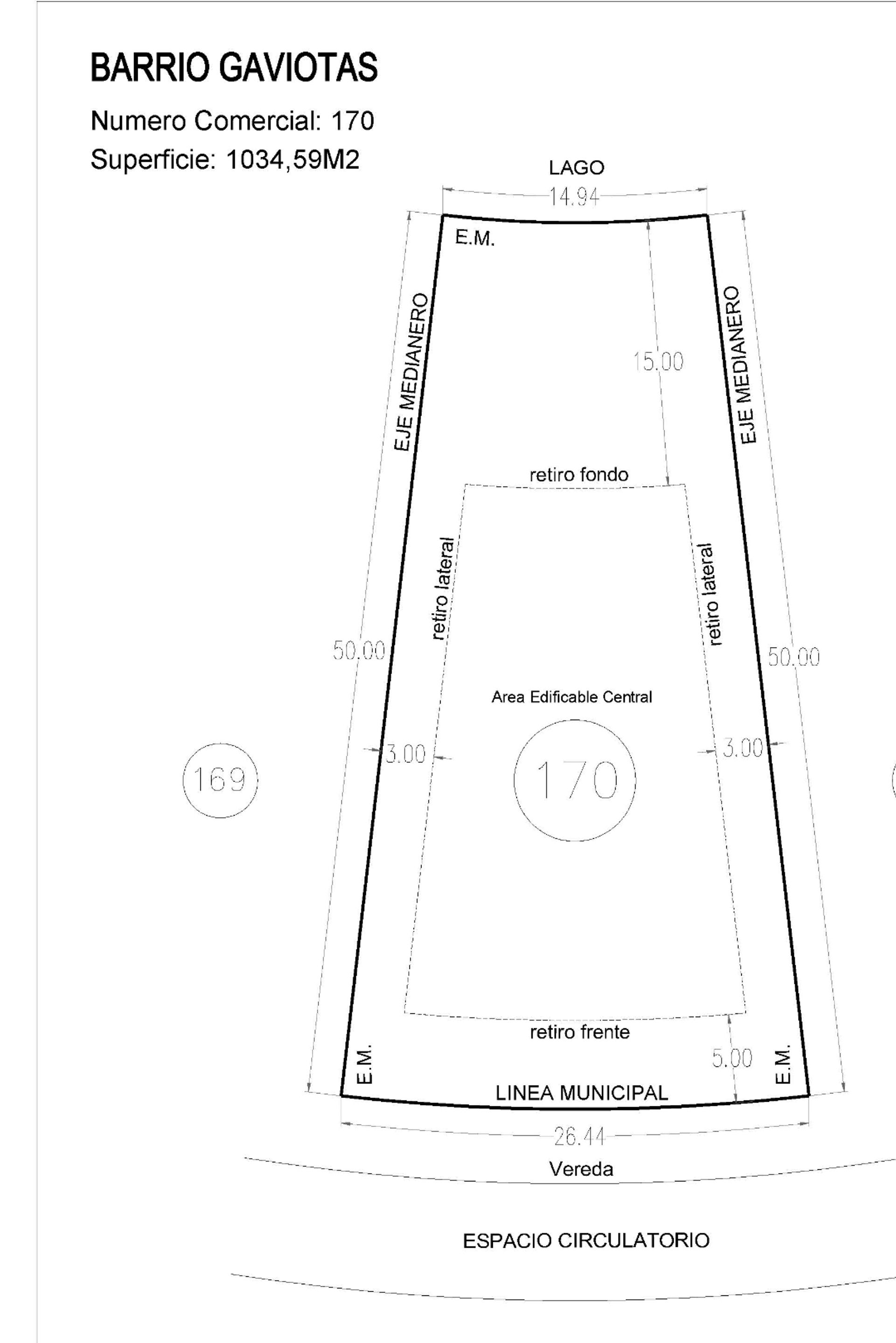 Plot for sale located in the exclusive Gaviotas neighborhood, within Nordelta. It is a piece of land of 1,034.59 square meters, with a southwest orientation and in a lease transfer status. Its waterfront location offers open views and an environment of high privacy and brightness, typical of developments in the northern part of the city.