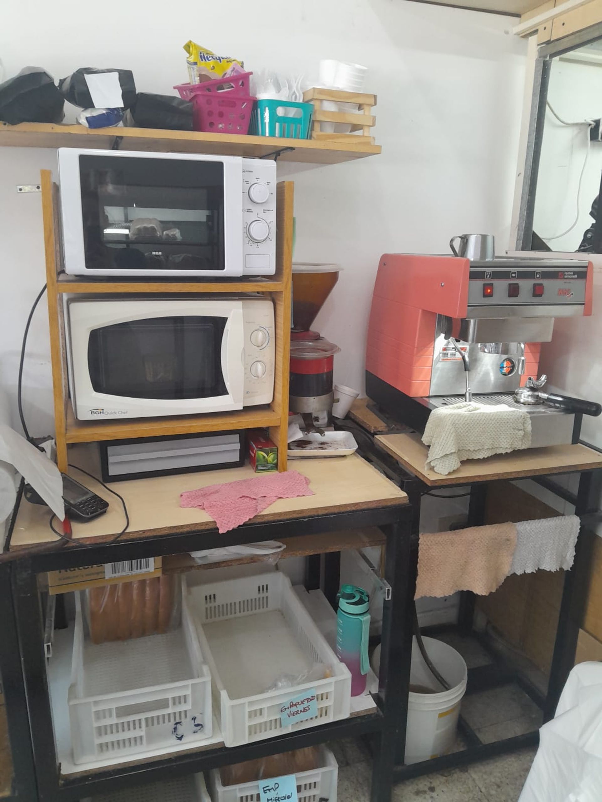 - One‑tub espresso machine and pizza molds.