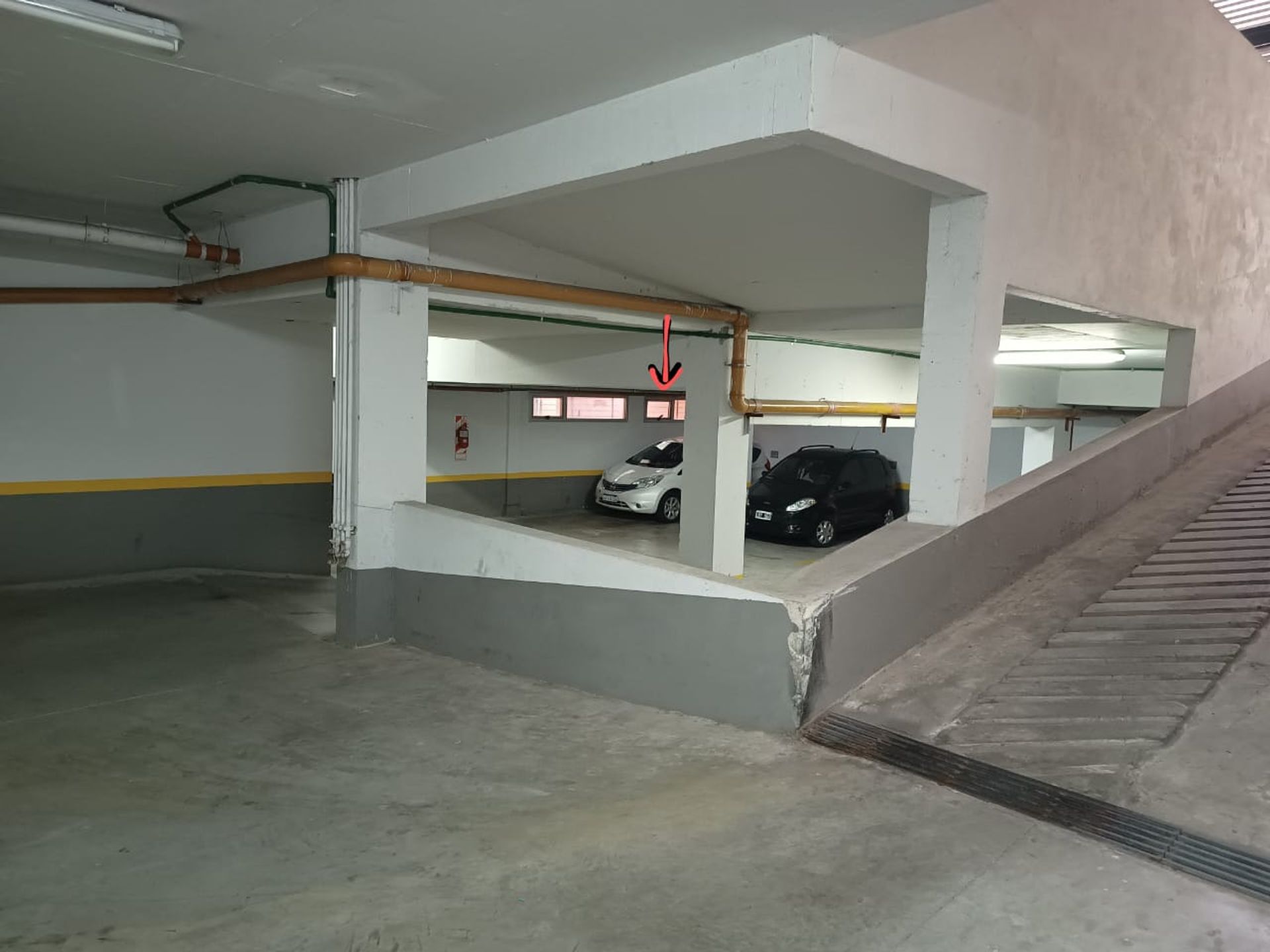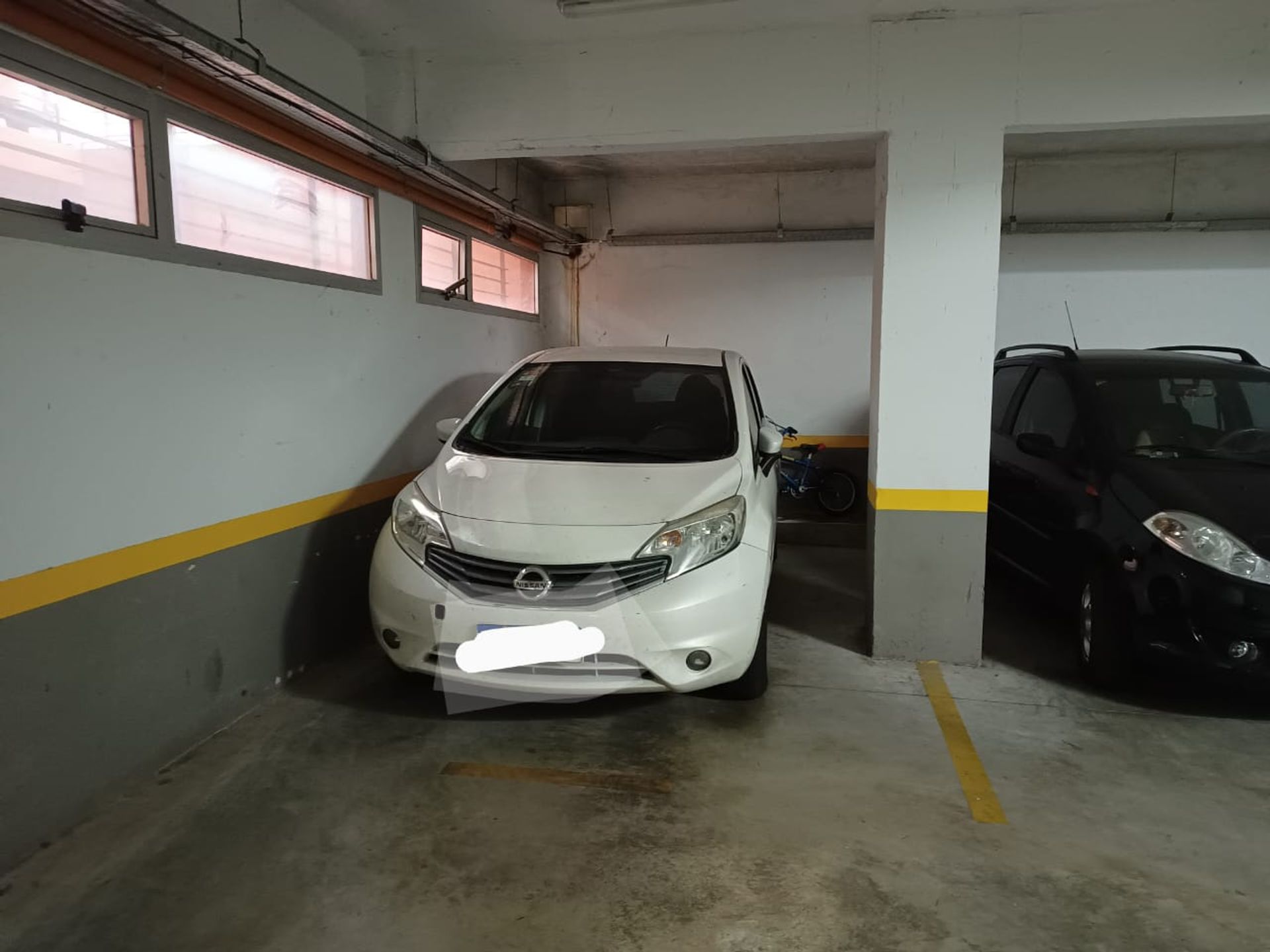 This covered garage of 13.22 m² is located on the first basement level of a building with an independent entrance, between wall and column, and features access via a fixed ramp. Entry is made through an electric gate and includes additional space for bicycle storage.
