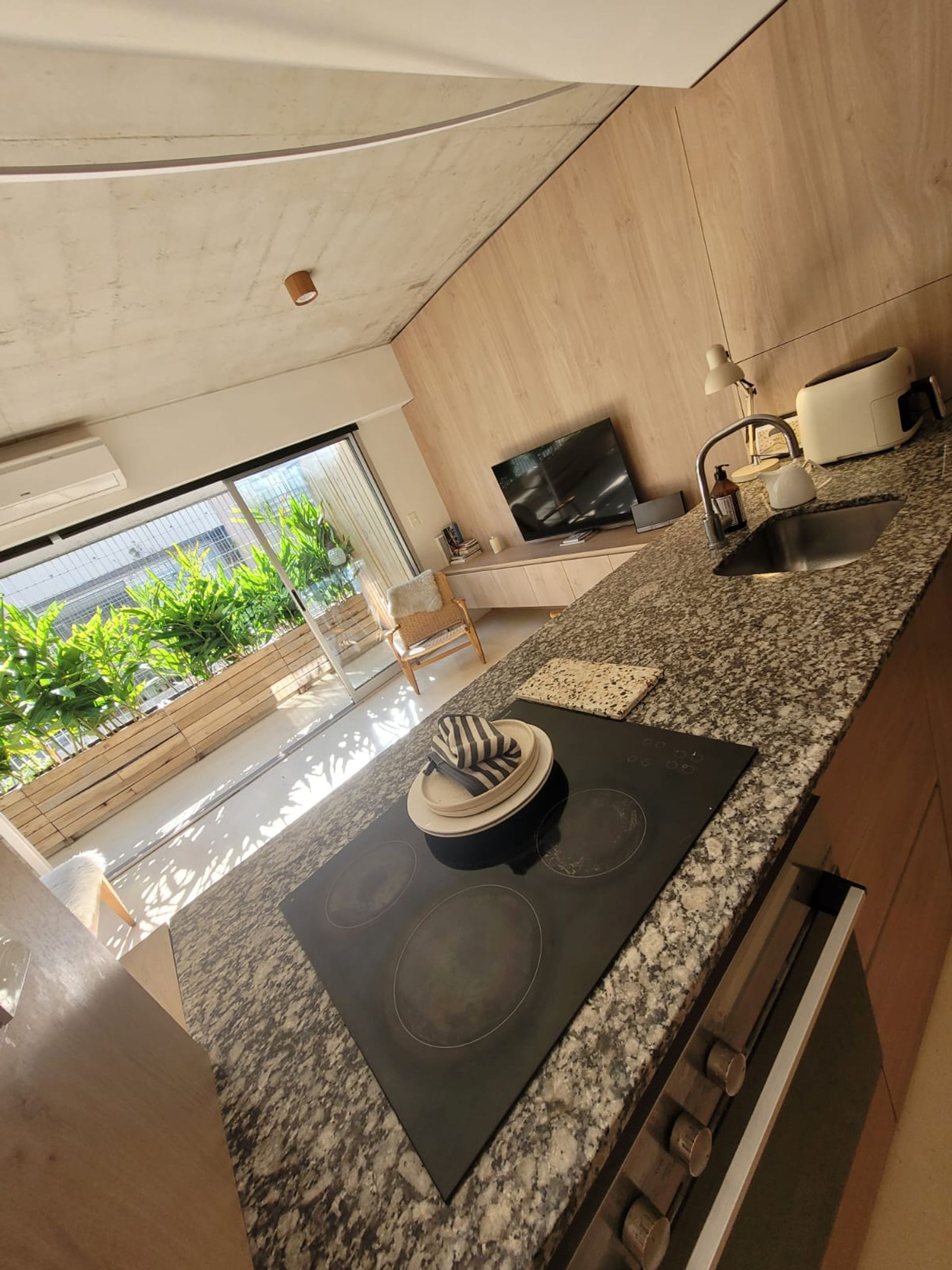 The living‑dining room opens onto a balcony with a deck, and the integrated electric kitchen features a granite countertop, creating an ideal environment to enjoy every corner.
