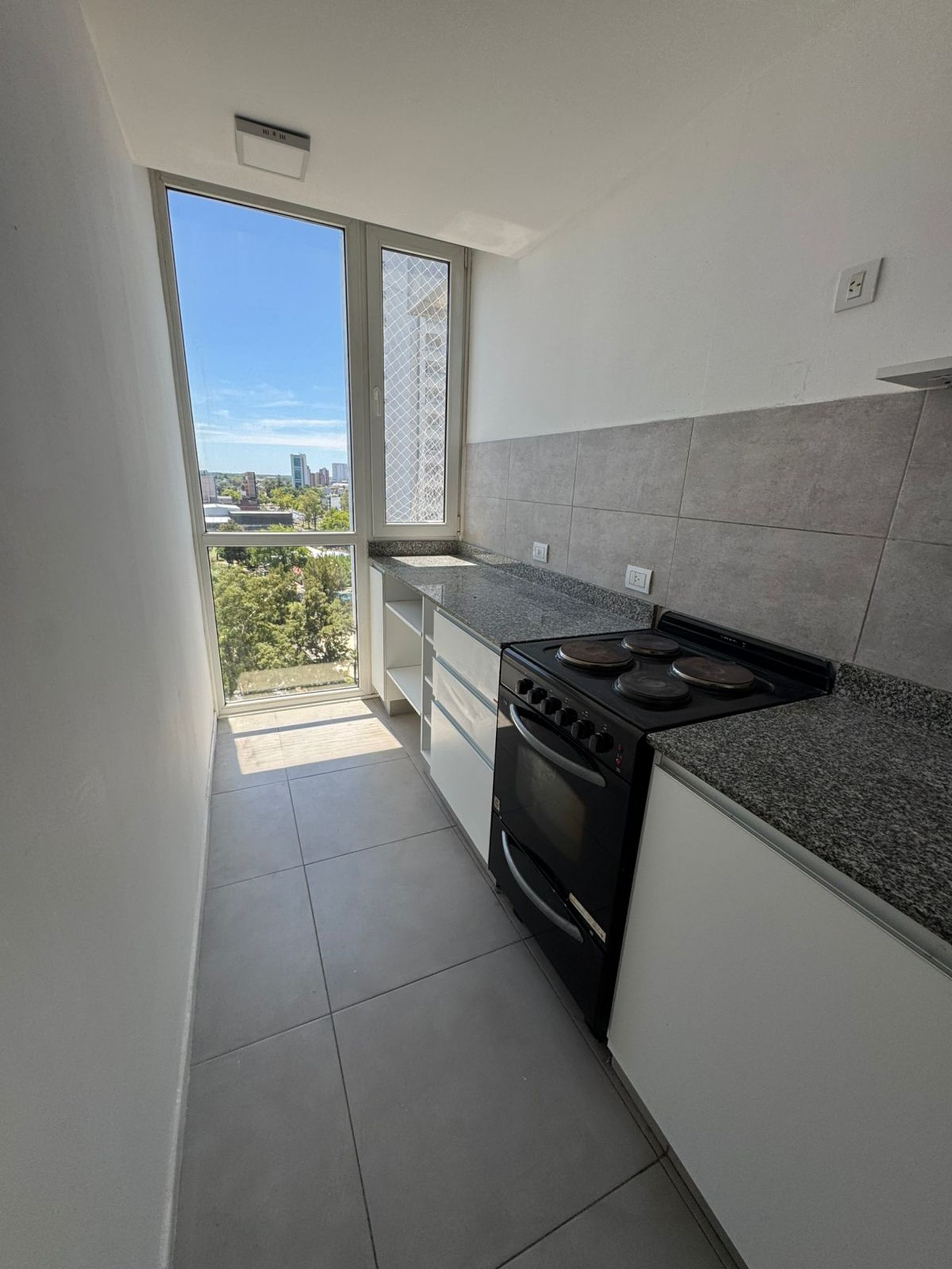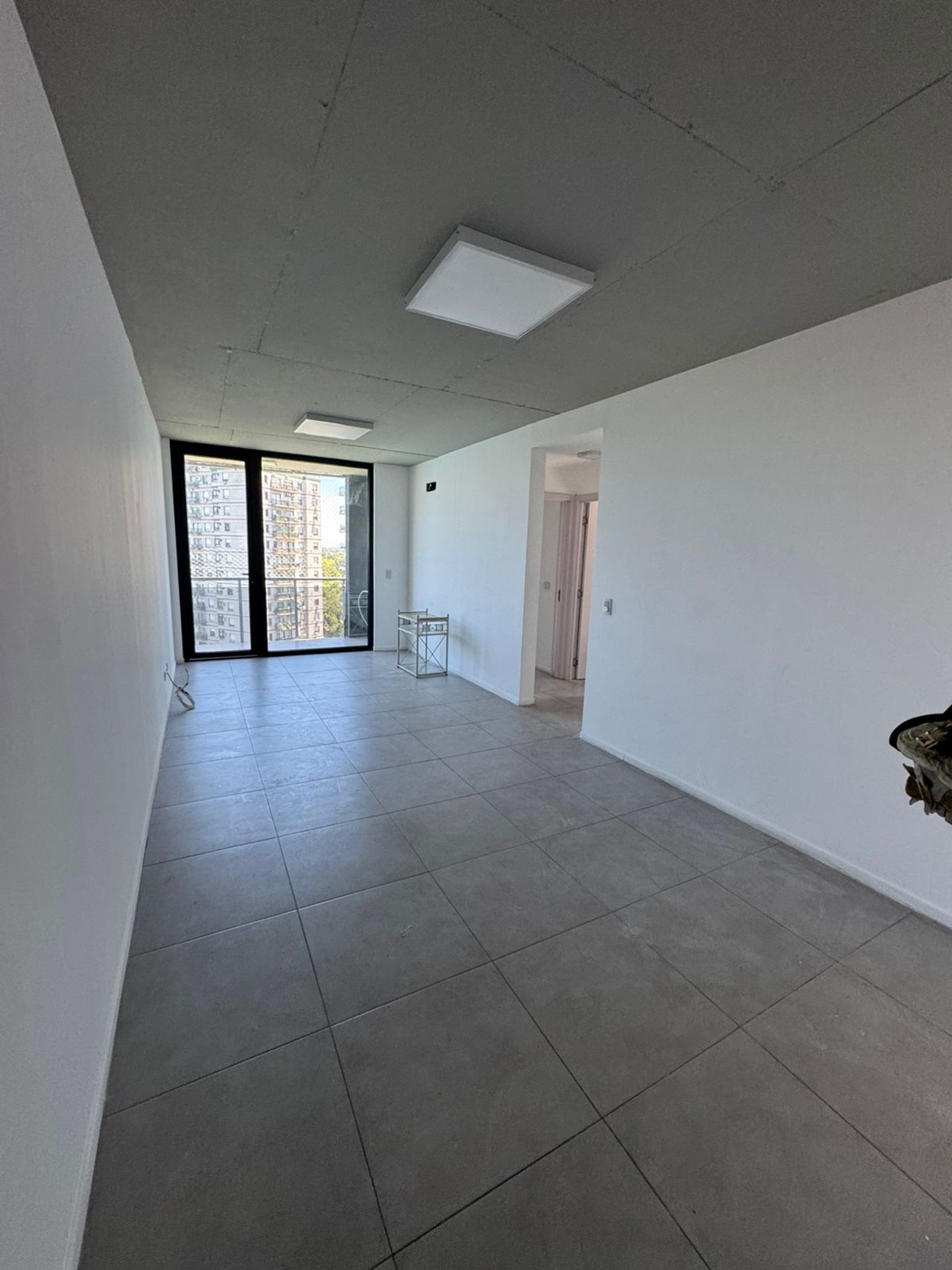 The spacious living‑dining area opens onto a balcony that offers an open view and the presence of a refreshing pool, creating a space of comfort and relaxation. The building's height and modern architecture allow natural light to flood every corner, enhancing the sense of spaciousness and connection with the surrounding environment.