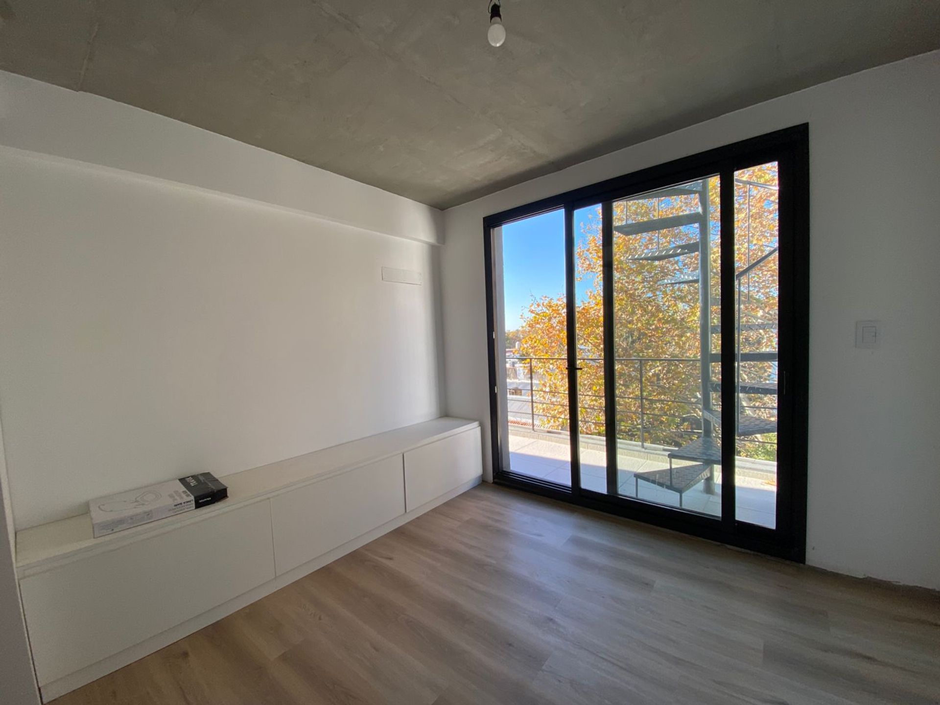 The full bathroom includes high-quality materials selected for the area: Ferrum tiles, Peirano fixtures, and a Johnson bathtub. The copper piping system is already prepared for two air conditioning units, while heating is managed via A/C. The interior flooring is covered with high-traffic PVC, finished with 7 mm thick wood veneer, and the interior doors are clad in natural wood.