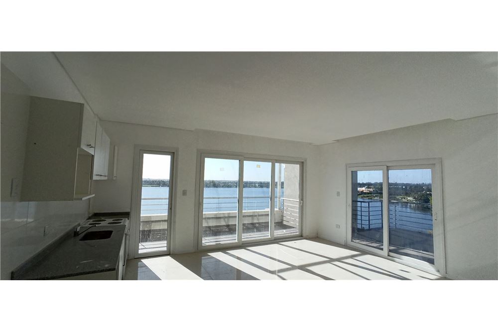 Two‑room apartment in Vila Vela, Villa Nueva, Tigre, near Nordelta. The property offers 60 m² of covered space and a spacious corner balcony terrace of 35 m², equipped with a grill. The integrated kitchen and living‑dining area open directly onto both balconies, providing privileged lake views. Facing northeast, it receives sun and light throughout the day.