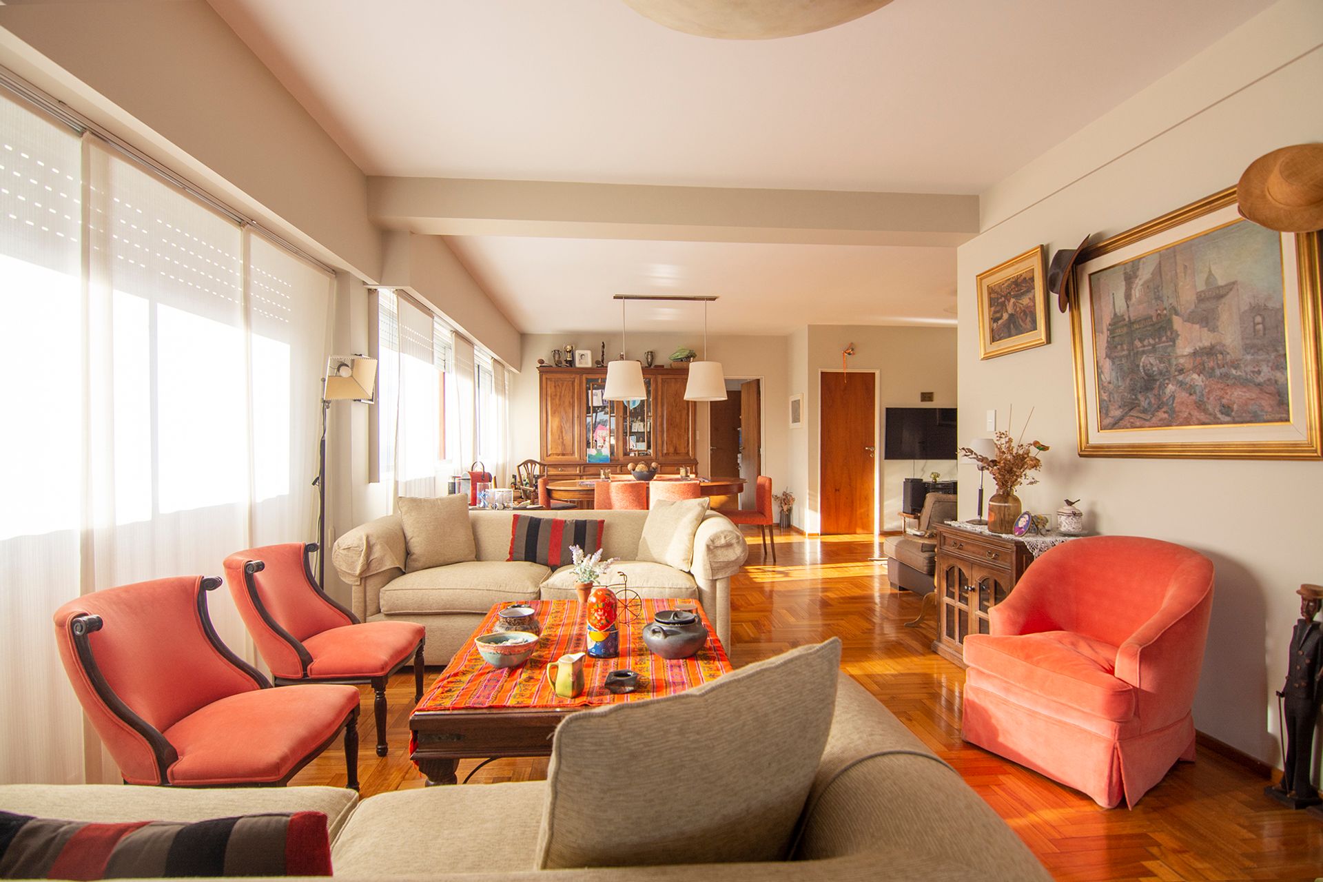 The residence, with a functional and very bright layout, features 3 bedrooms, one of which is en-suite, 1 full bathroom and a reception toilet. The living‑dining room, with large windows, receives abundant natural light throughout the day and is complemented by a desk area, ideal for remote work or study.