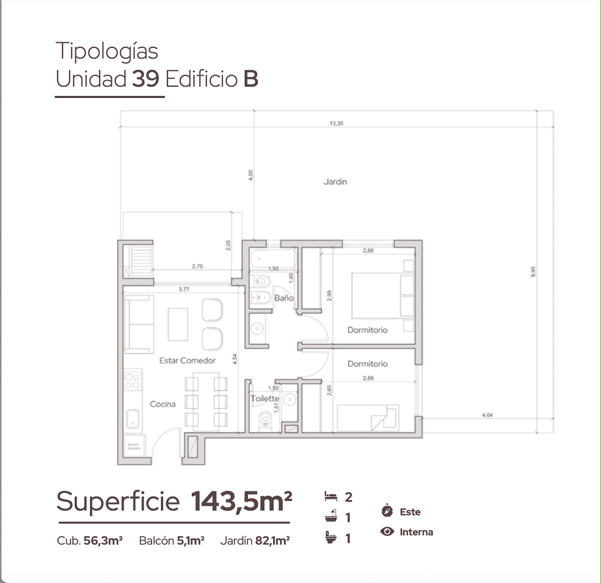 Three‑room unit with two bedrooms, one full bathroom and a toilet, accompanied by a garden and a balcony. The residence is located on the ground floor and offers direct access to the Bancalari area and Route 197, passing through the tunnel that crosses the road and bypassing the entrances to the Nordelta, Santa Bárbara, Barbarita, El Talar de Pacheco, La Comarca, El Encuentro, Pacheco Golf, Laguna del Sol and Shopping Euskal districts.