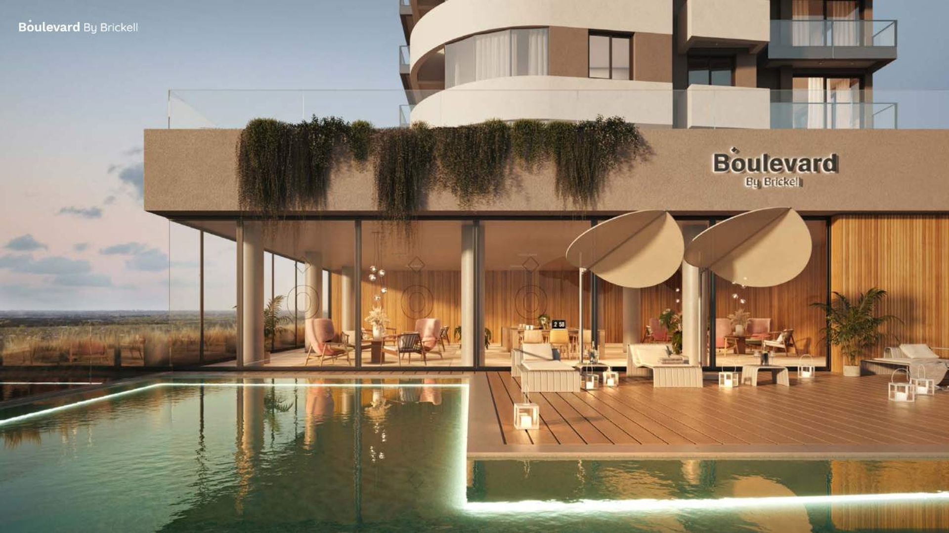 The building offers a range of first‑class amenities: a pool with solarium, exclusive rooftop lounge, kids club, cinema room, event space, ground‑floor commercial units, 24‑hour security and access control, valet parking, laundry, gym, and bike station.