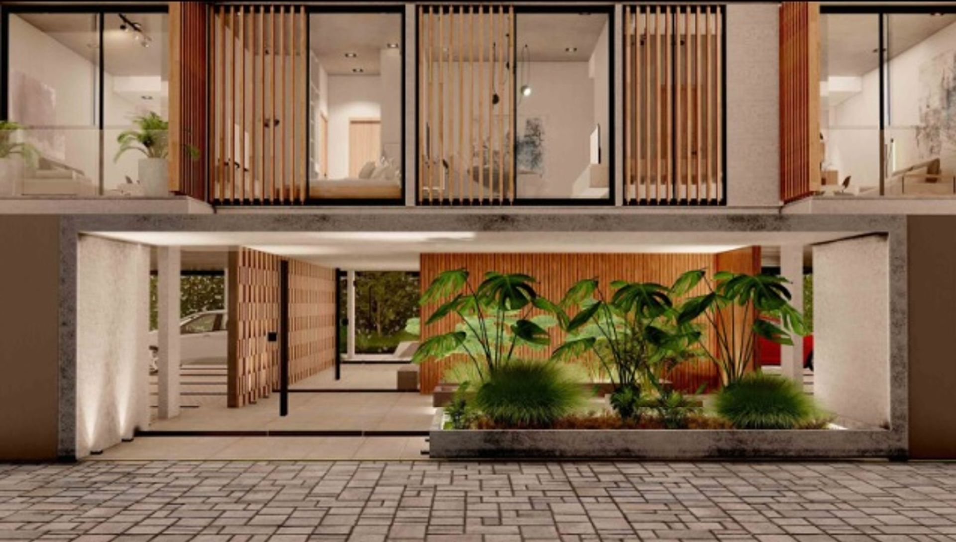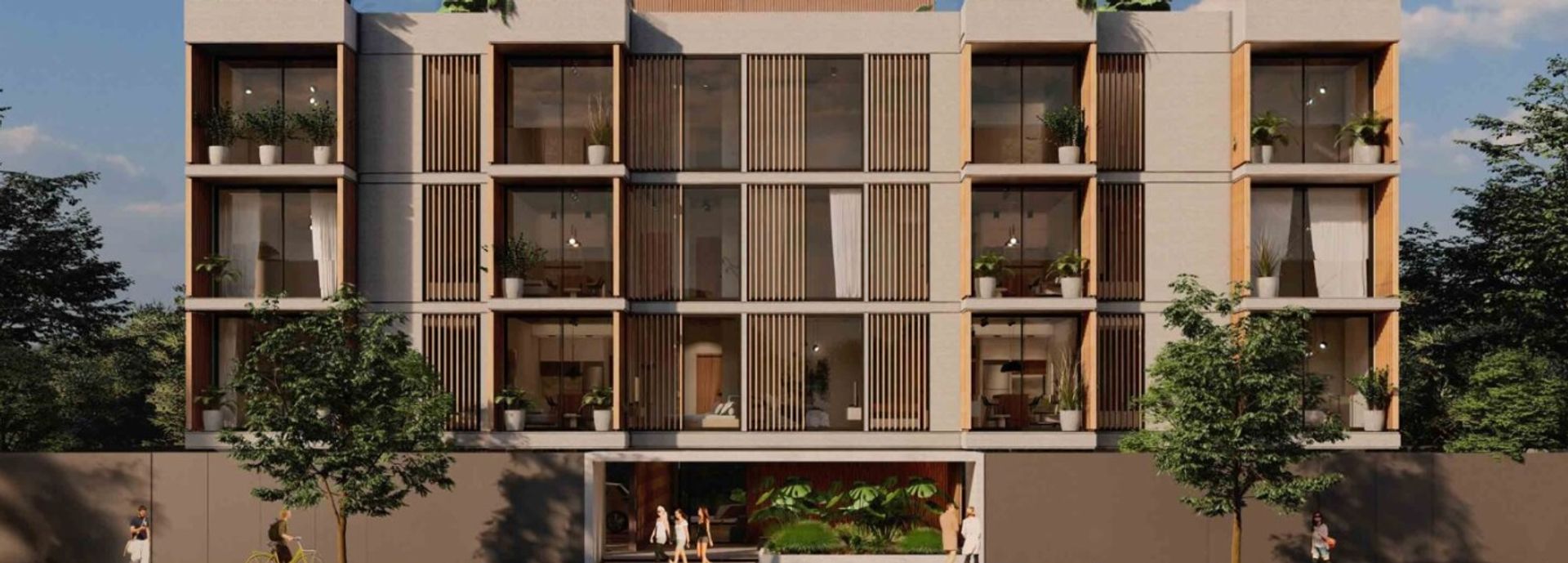 The Brickell Pacheco project is located in the heart of the residential neighborhood of General Pacheco, in the province of Buenos Aires. Its architectural design combines parallel lines and coherent facades, delivering a uniform visual language with distinctive treatments on each façade. The main entrance, positioned on the front of the lot, features a concrete well and a glass enclosure, creating an open and welcoming access focal point that invites residents to explore the building.