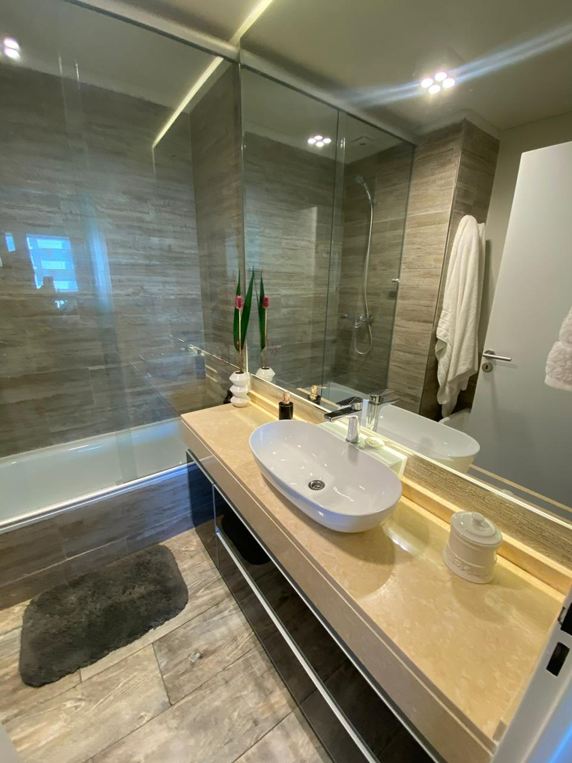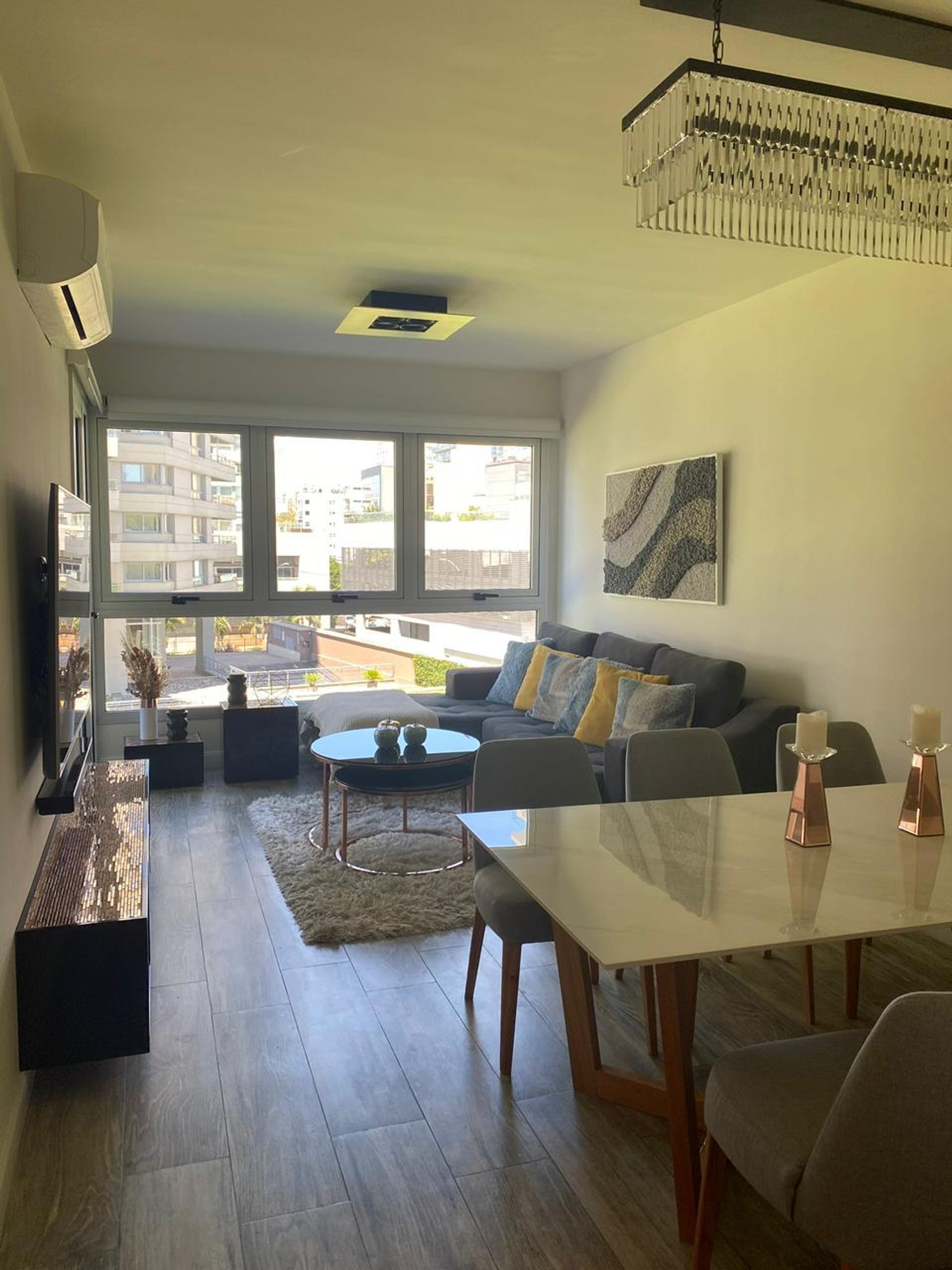 1-bedroom apartment located in the Star Tower in Puerto de Olivos, an 18-story building with 24‑hour security and full amenities. The unit includes a parking space and has a reception hall, a reception toilet, and a living room and dining area that opens to an integrated kitchen with a bar. From the terrace and balcony you can enjoy a view of the river. The bedroom is en suite, with a custom TV unit, and the full bathroom has been renovated with new marble. The home has two air conditioners with cooling and heating functions.