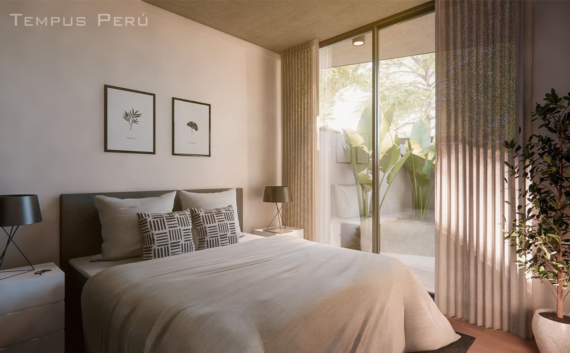 The kitchen and living area feature an exit to the garden, reinforcing the connection to the outdoors. Additionally, an integrated laundry area adds daily convenience.