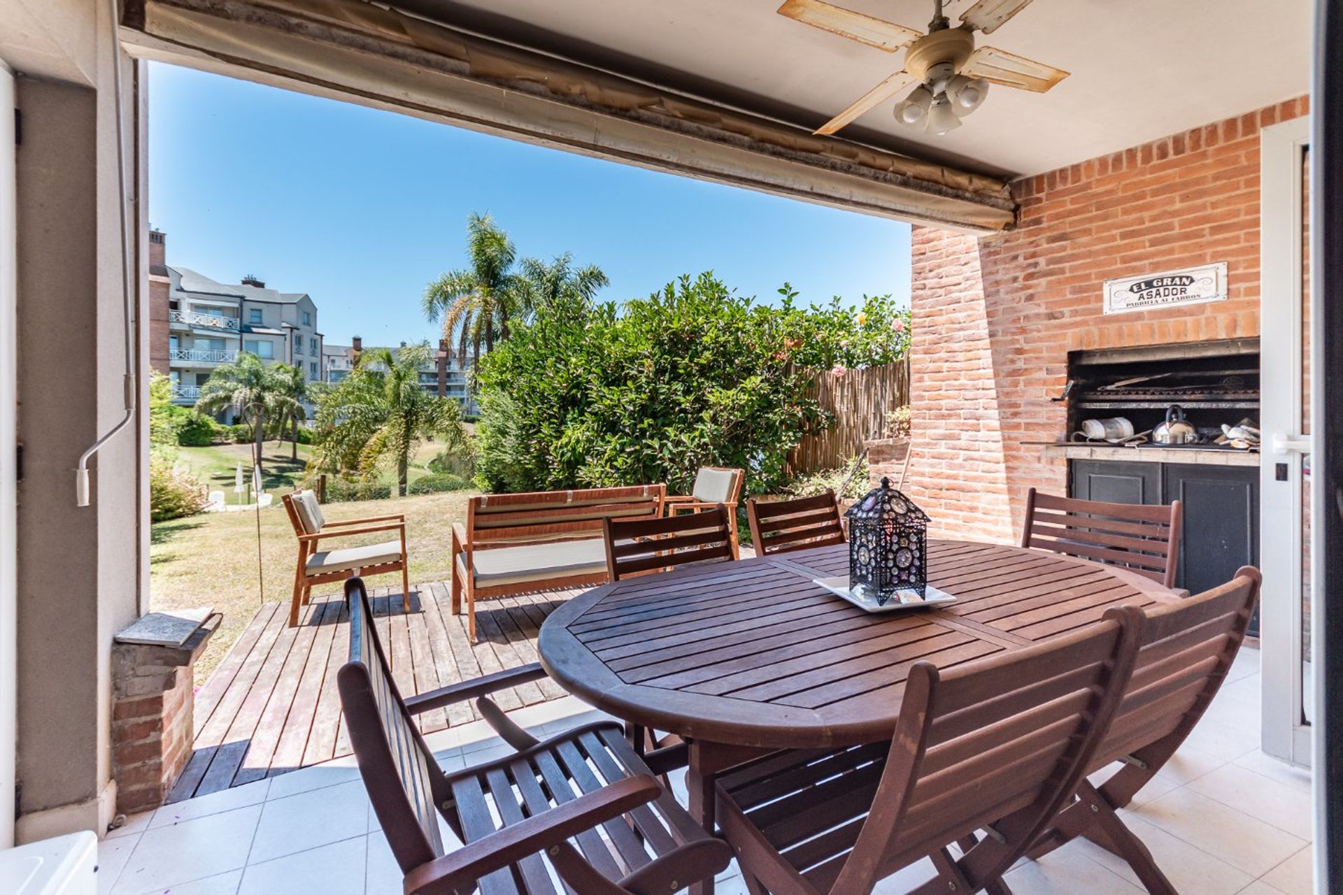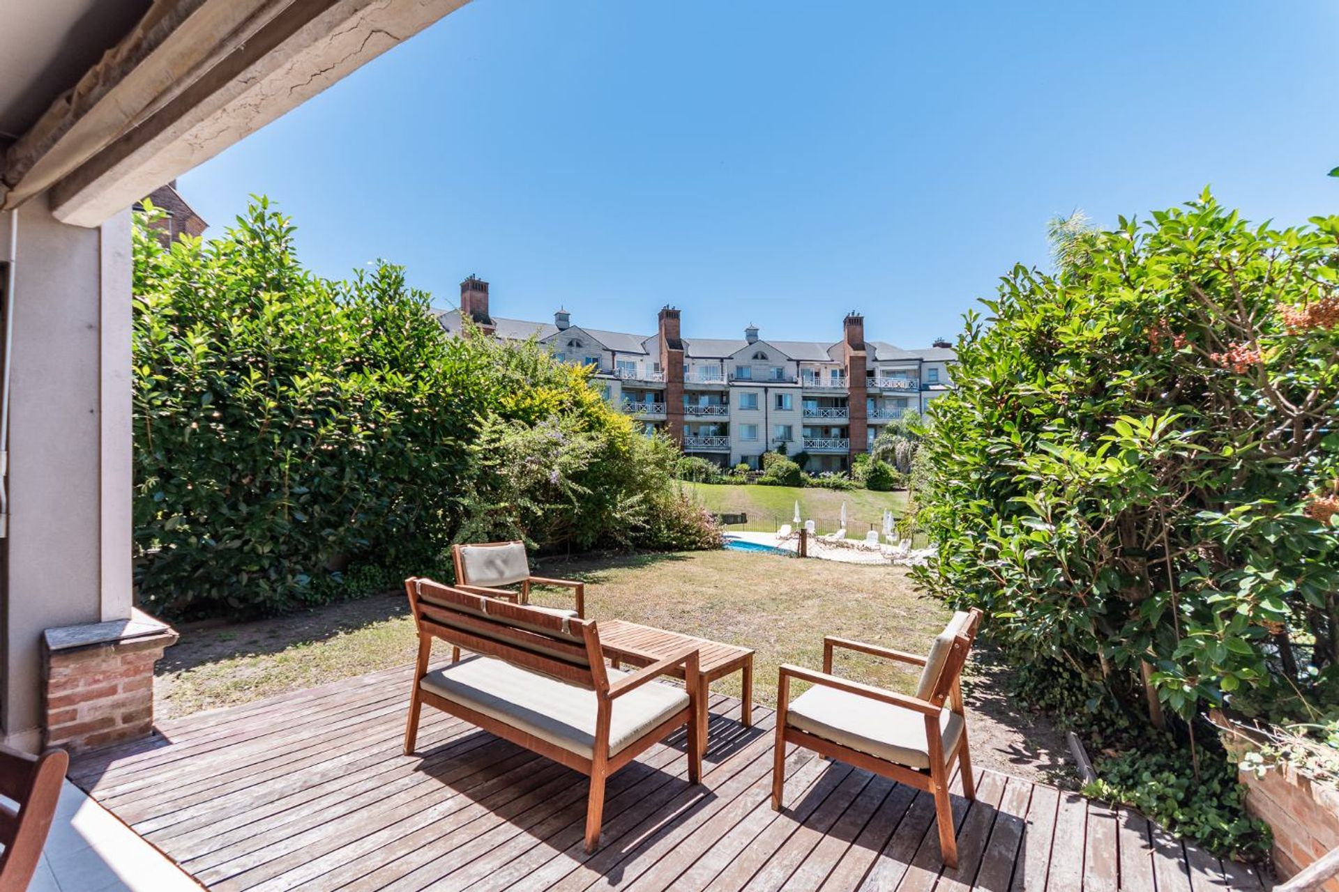 Three‑room apartment with private garden and lake view, located in Building Bahía 1 of Portezuelo, Nordelta.