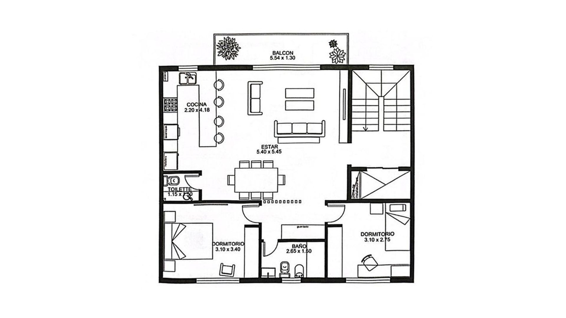 This elegant 3‑room front‑facing apartment, ready for occupancy from January 2026, combines functionality and style. The spacious living‑dining area, measuring 7.60 m² by 5.45 m², includes a kitchen with laundry space and features a front balcony of 5.54 m² by 1.30 m² offering unobstructed views. A toilet in the social area complements the layout. The bedrooms, one measuring 3.10 m² by 3.40 m² and the other 3.10 m² by 2.75 m², provide a cozy and private environment. The full bathroom, 2.65 m² by 1.50 m², is finished with high‑quality porcelain tiles and equipped with ceramic fixtures.