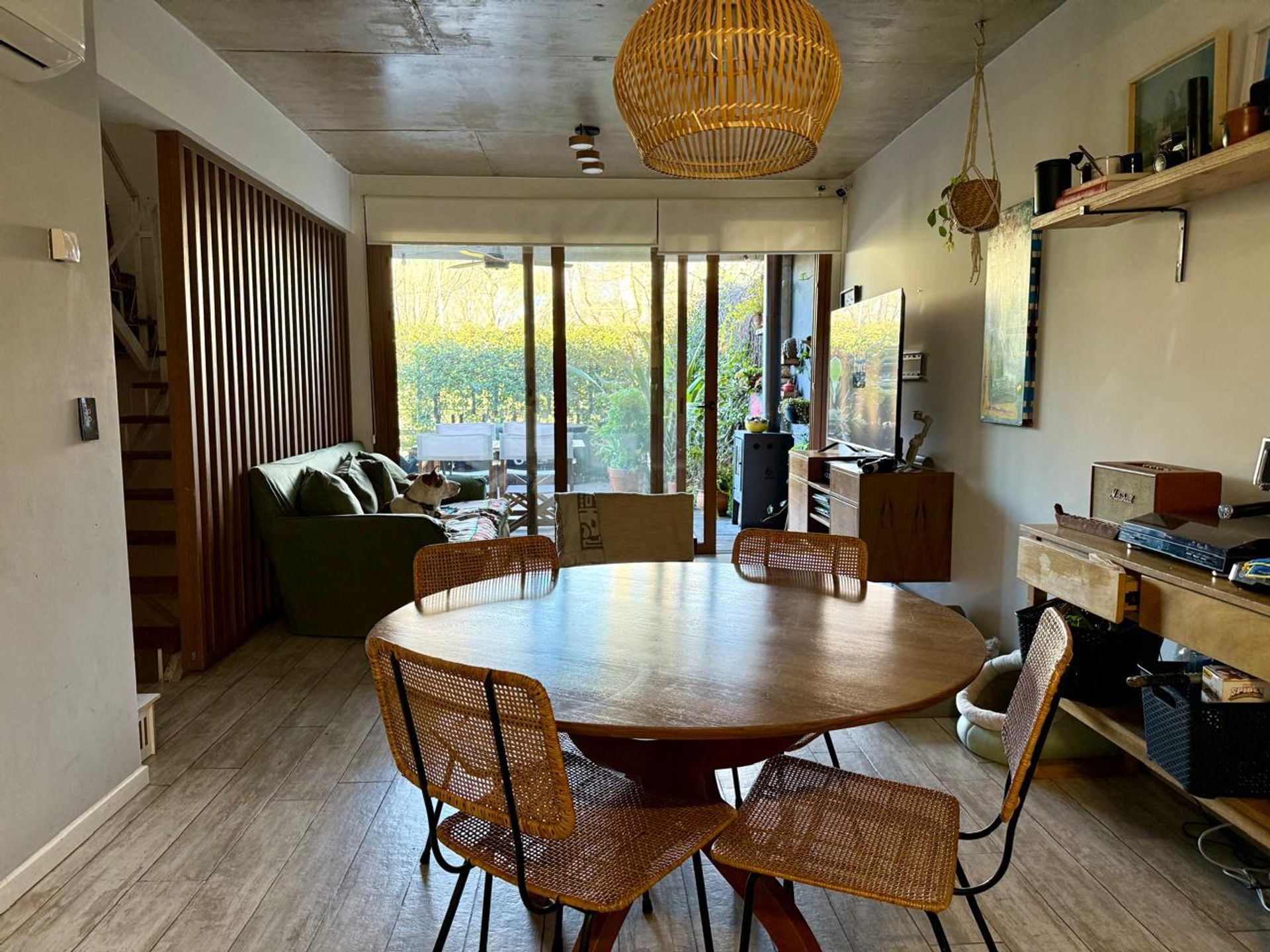 The apartment interior includes a reception hall with wardrobe, spacious living‑dining area with split air conditioning and heating, continuous balcony with open view, semi‑integrated kitchen with breakfast bar and laundry connection, full bathroom, and comfortable bedroom with large mirrored wardrobe and split air conditioning. The residence is noted for its brightness and warmth, and features a covered garage.