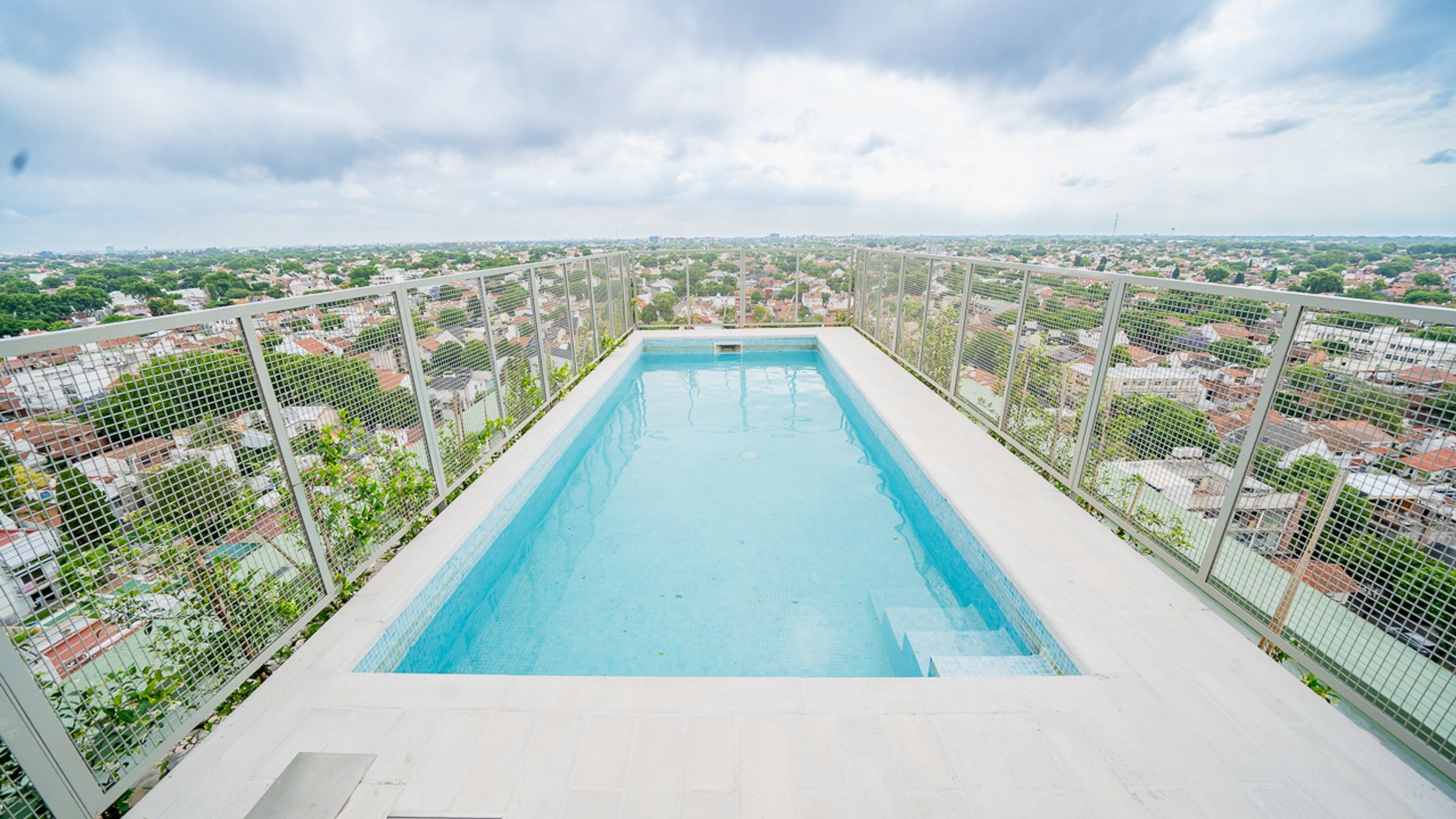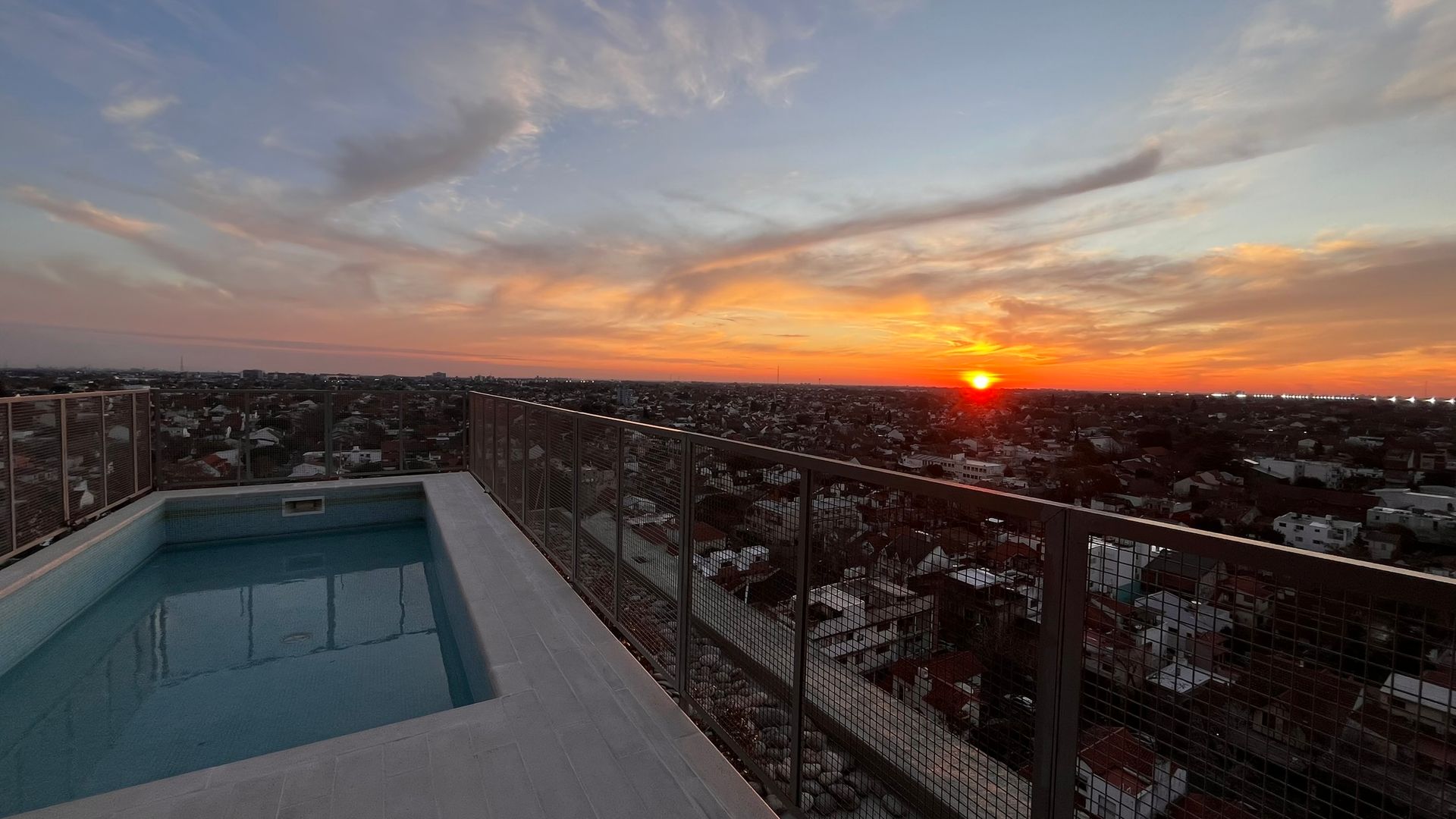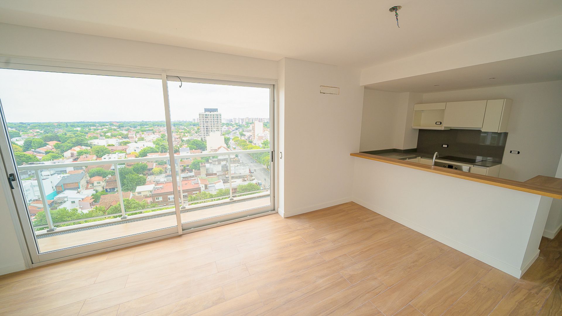 Brand‑new 2‑room apartment in the La Lucila area, Vicente López, offering unobstructed views of the river and San Isidro from the 13th floor. The residence faces north, ensuring abundant natural light throughout the day. The structure is built of reinforced concrete and features high‑quality finishes on both interior and exterior walls, with brick and plaster. The modern design is complemented by A30 anodized aluminum joinery and 3+3 safety laminated glass, as well as wood‑simulated porcelain tiles throughout.