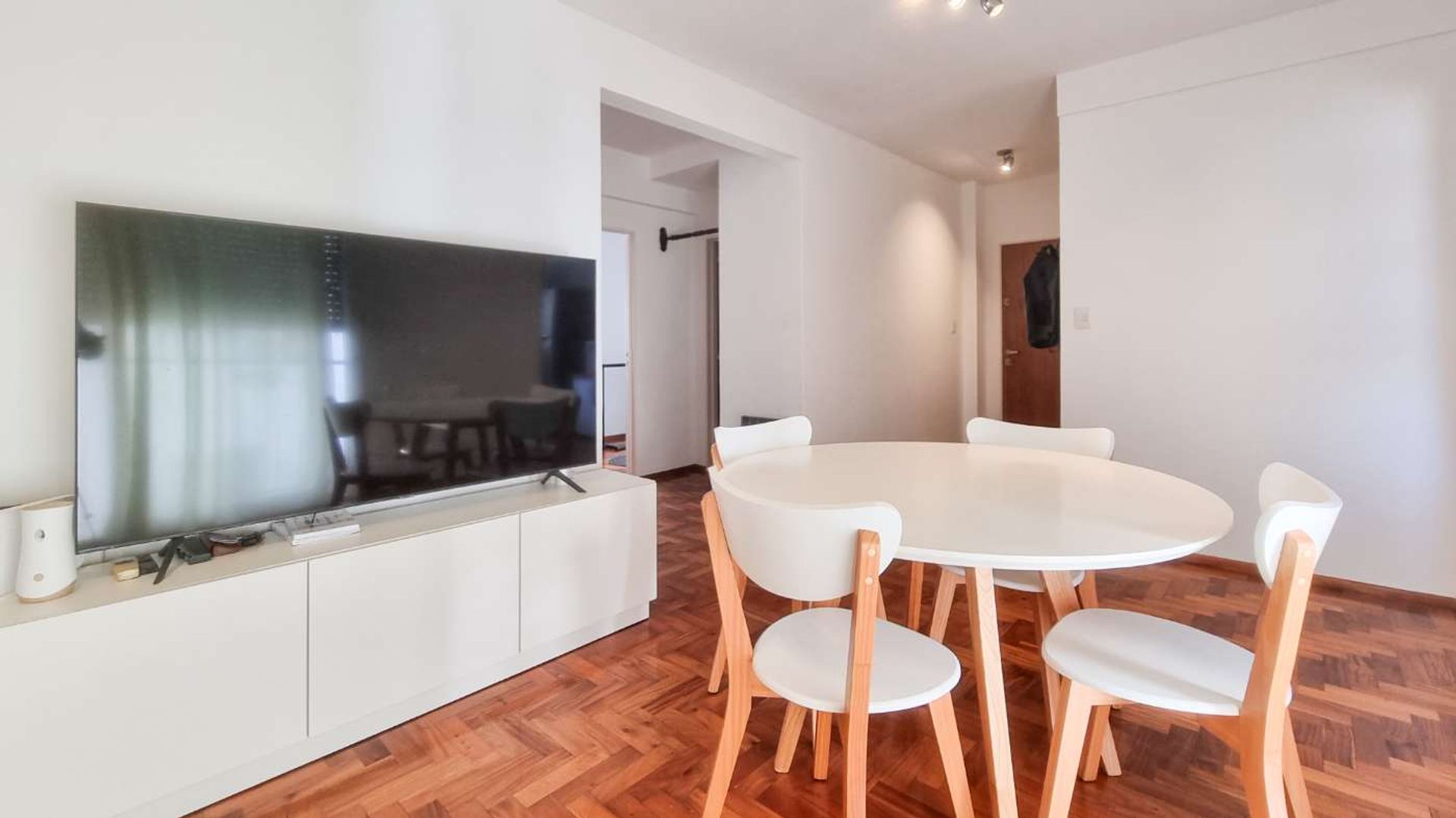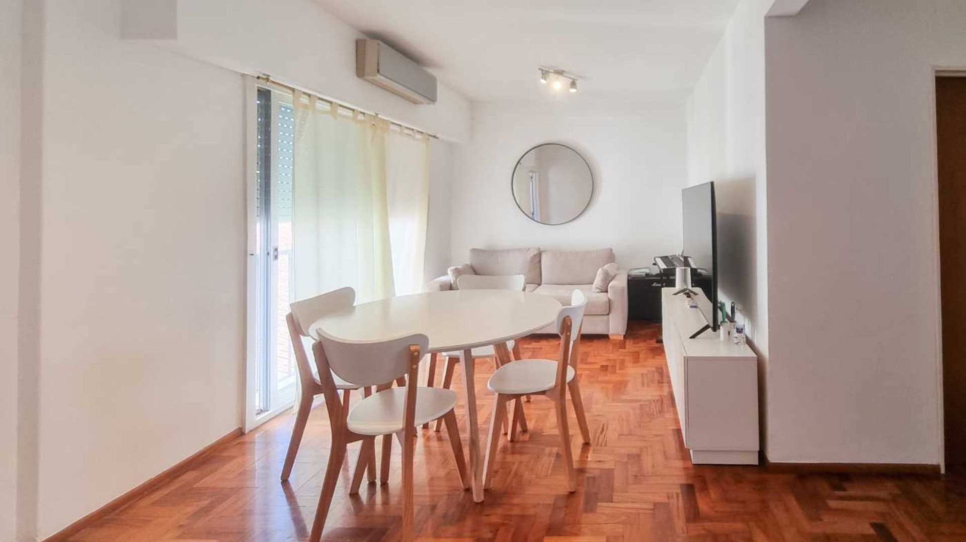 The parquet floors, laminated and in excellent condition, reflect lasting aesthetic care. The building is equipped with an elevator, and the monthly maintenance fees are approximately $95,000.