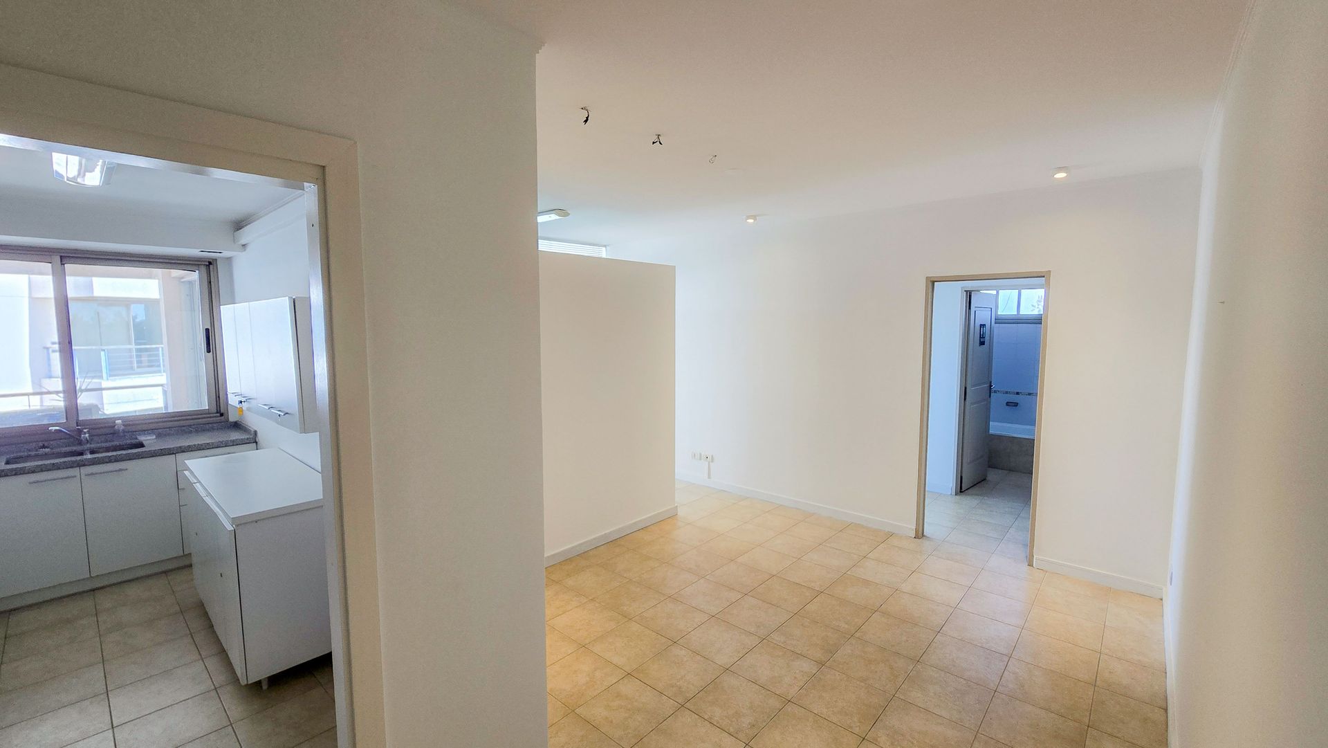 Upon entering, a comfortable living‑dining area opens directly onto the balcony, ideal for enjoying the open view of the bay. The independent kitchen, generous in size, has gas connection and excellent storage capacity.