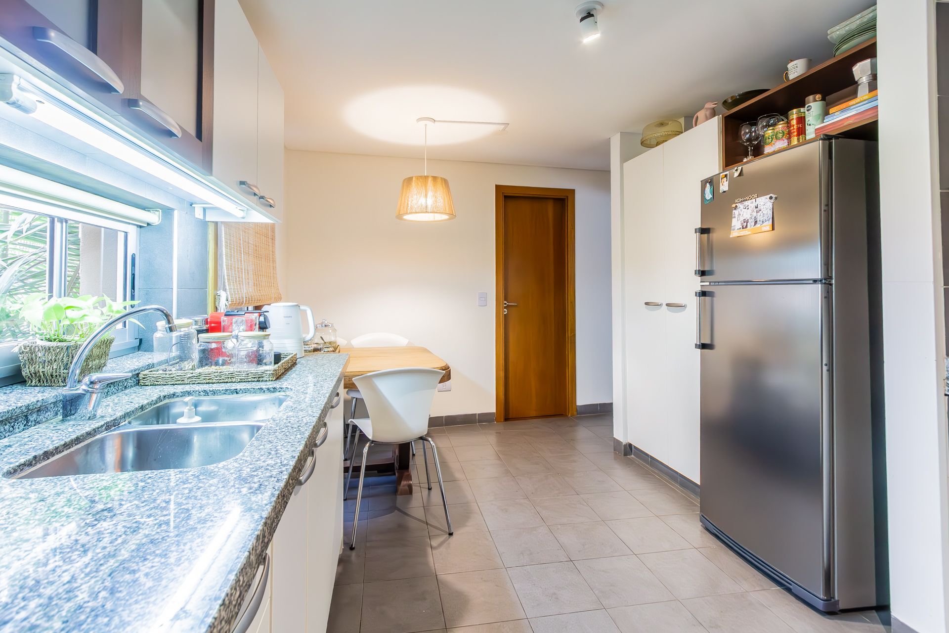 The interior is divided into four rooms. The spacious living‑dining area opens onto a balcony, ideal for enjoying the view and daylight. The kitchen is ample and includes a casual dining nook, facilitating social interaction and meal preparation. Three bedrooms offer versatility: the primary bedroom features an en‑suite bathroom and walk‑in closet; the second bedroom has a built‑in wardrobe; the third can be adapted to any function the owner requires. The property includes two full bathrooms, a guest toilet, and a bright service wing with a full bathroom. Additionally, a private storage room of 2.06 m² provides extra storage space.