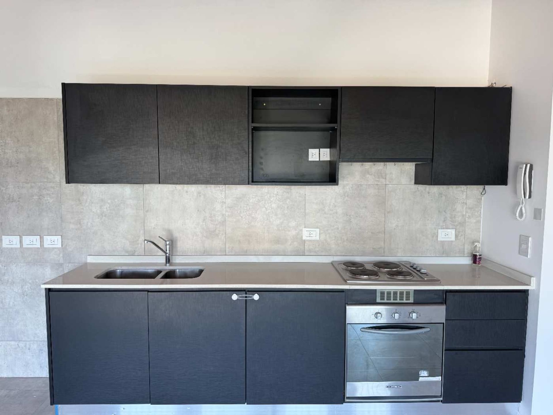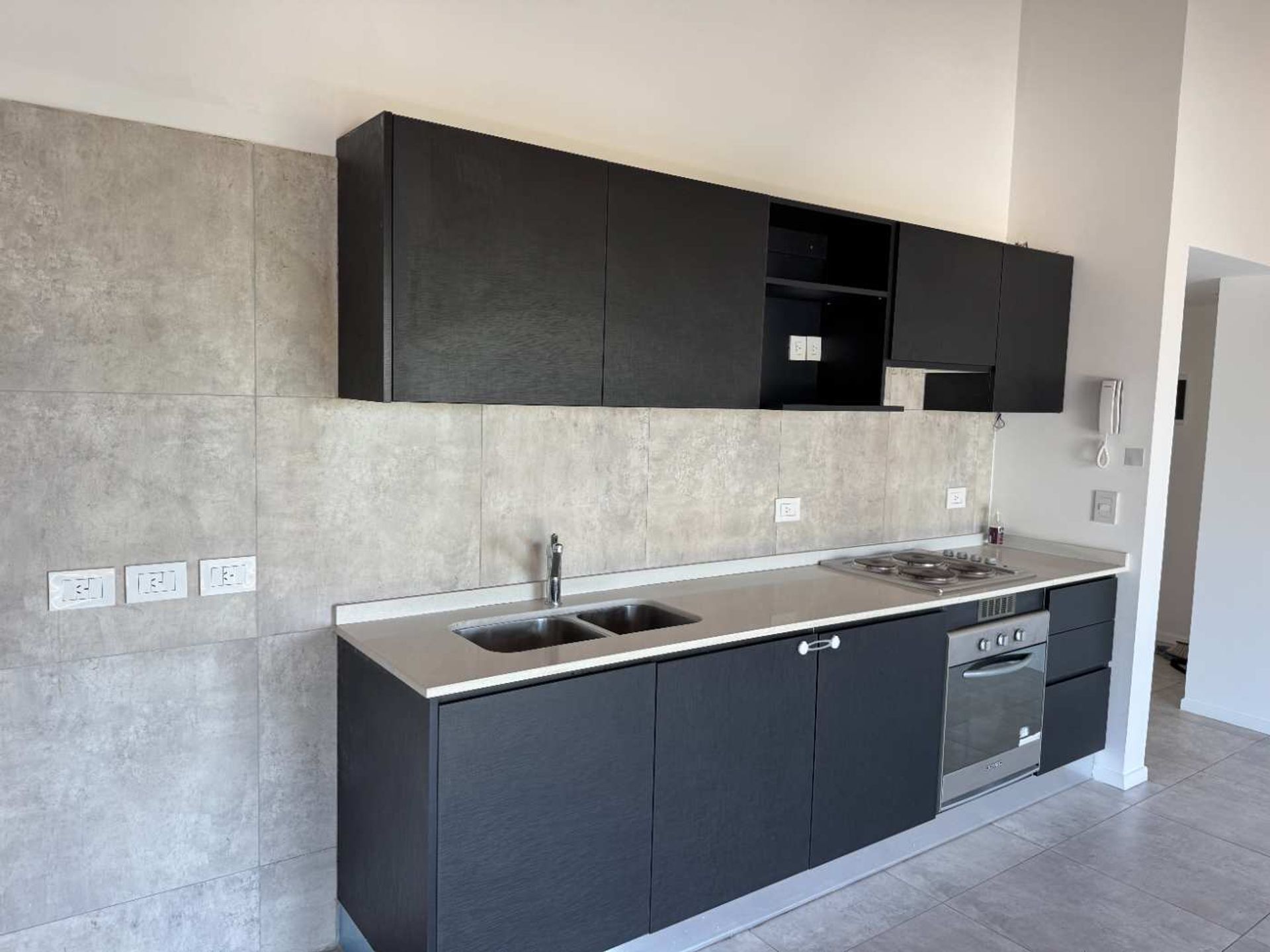 Elegant three‑room apartment located in a modern residential complex, designed to provide comfort and style in every detail. The entrance opens to a welcoming lobby that leads to a spacious living area with a sliding glass wall, offering an open view and a sense of spaciousness. The kitchen is built‑in and equipped with full cabinetry both below and above the counter, seamlessly integrating functionally into the living space.