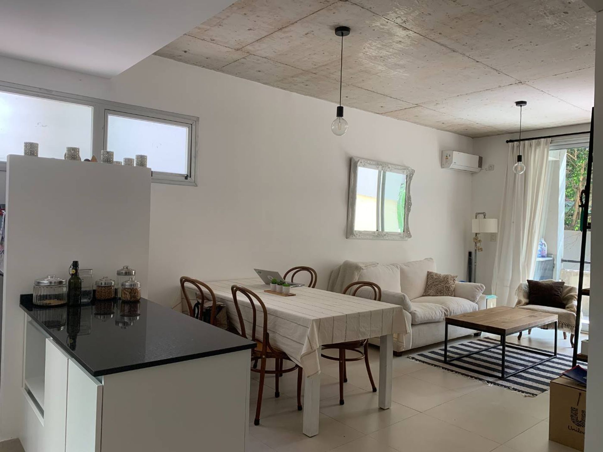 This modern 1‑bedroom apartment is located in the exclusive Olivos area, known as “La Isla.” The property features one bedroom, a full bathroom, and a semi‑integrated kitchen with a bar. The living area is spacious, bright, and functional, and it includes a large balcony overlooking the front facade where a covered laundry space is located.