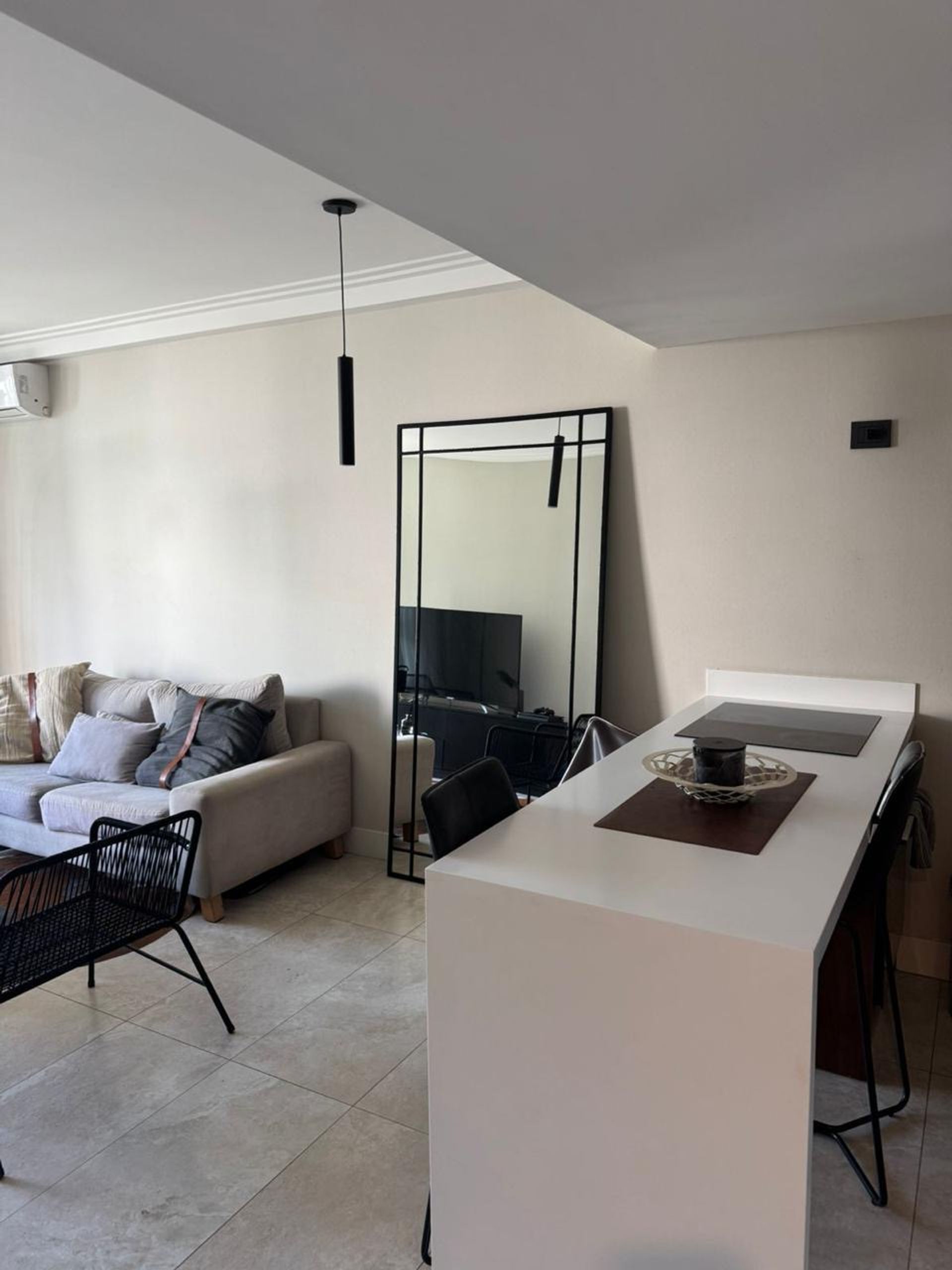 The unit features an integrated kitchen that includes a breakfast bar and a dedicated laundry area, as well as ample storage space. The entrance hall leads to a bright living‑dining area with a continuous balcony, ideal for enjoying the sea breeze. The bedroom provides direct access to a private balcony and a full bathroom, offering an intimate and functional space.